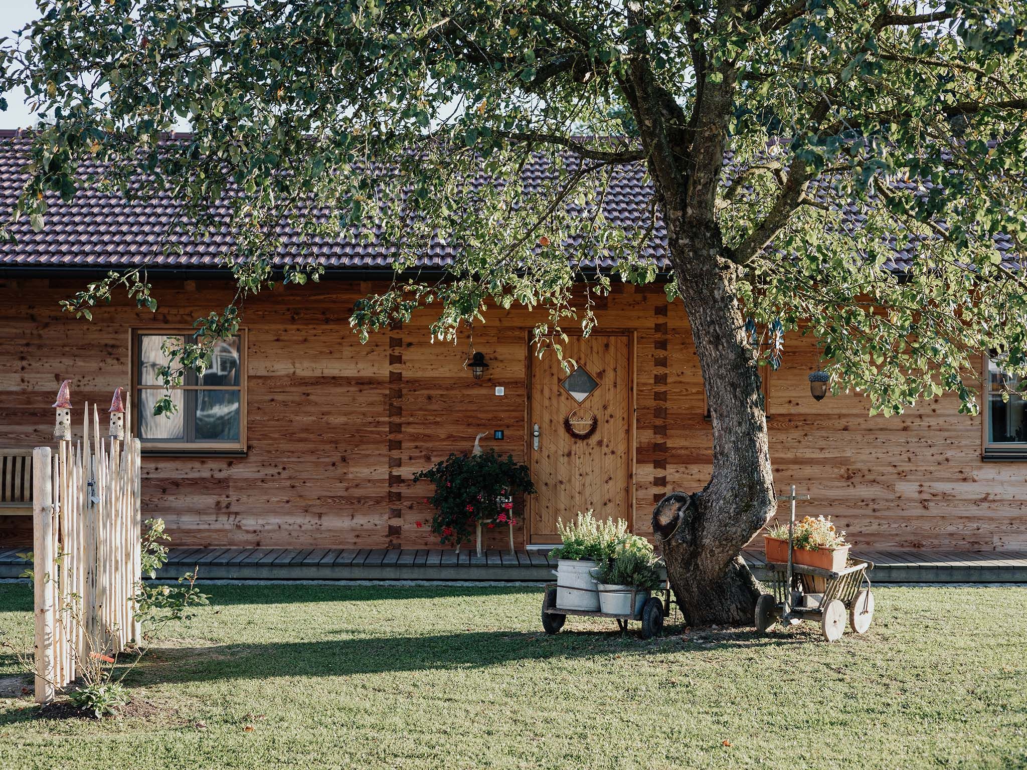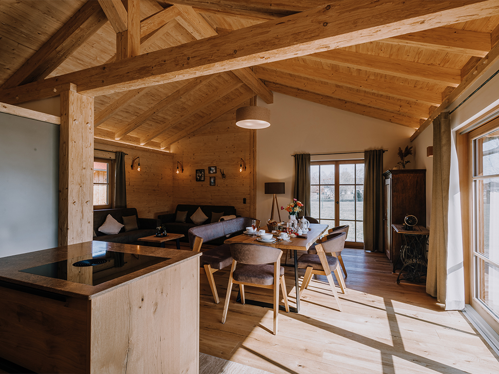 Genießen Sie Ihren Urlaub in unserem klimafreundlichen „Chalet am Apfelbaum“. Dieses besteht aus einem großen Wohn- und Essbereich mit voll ausgestatteter Küche, einem Schlafzimmer mit Doppelbett, einem Badezimmer mit Dusche und WC und einem separaten WC. Die Schlafzimmermöbel aus Zirbenholz sorgen für erholsamen und gesunden Schlaf. Zusätzlich schaffen zwei hochwertige Schlafsofas im Wohnbereich, Platz für 4 weitere Personen. Entspannen Sie auf unserer großzügigen Holzterrasse im Softub-Whirlpool und fühlen Sie sich wie zu Hause, bei uns „Dahoam“ am Duschl-Hof.