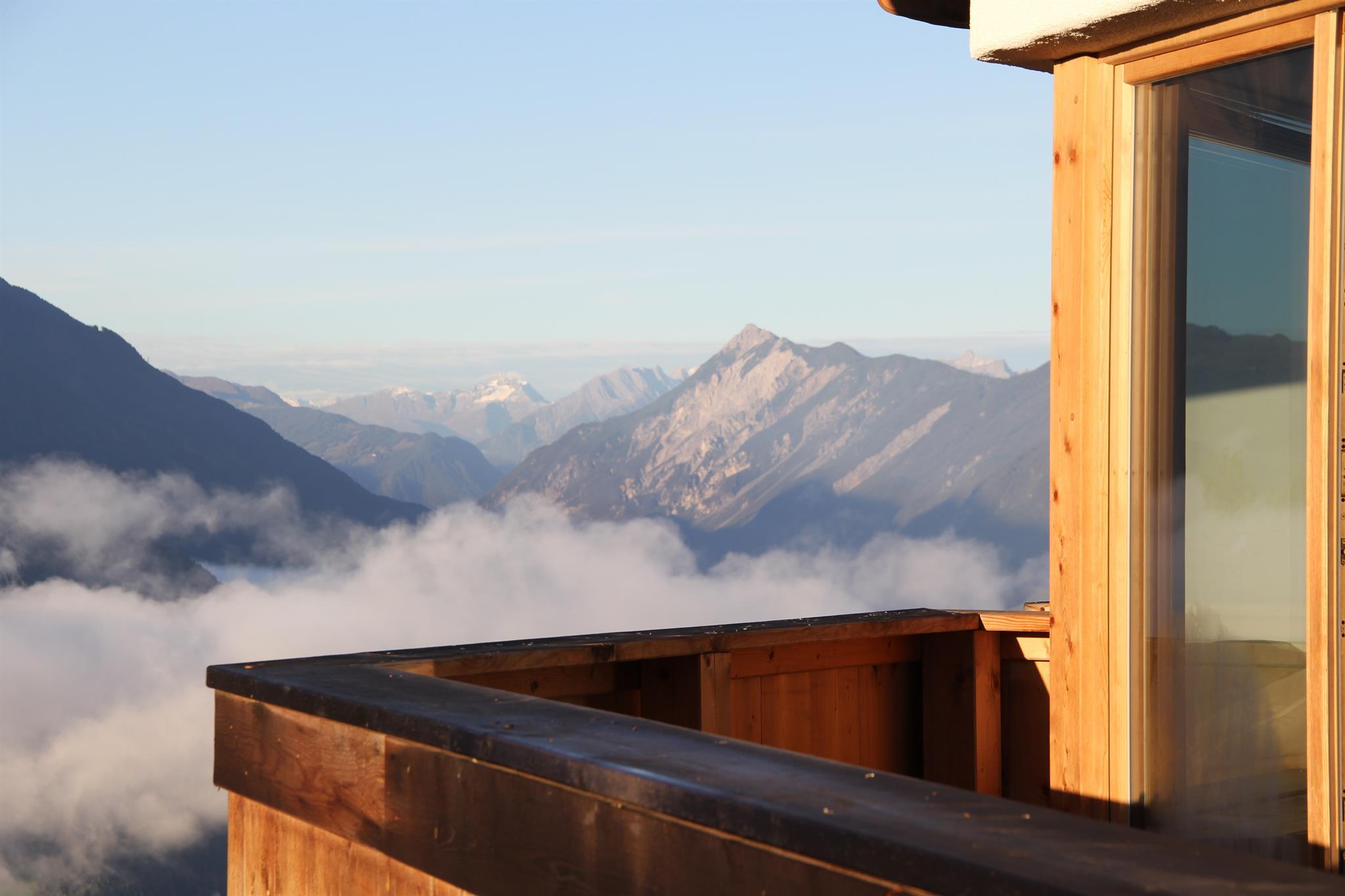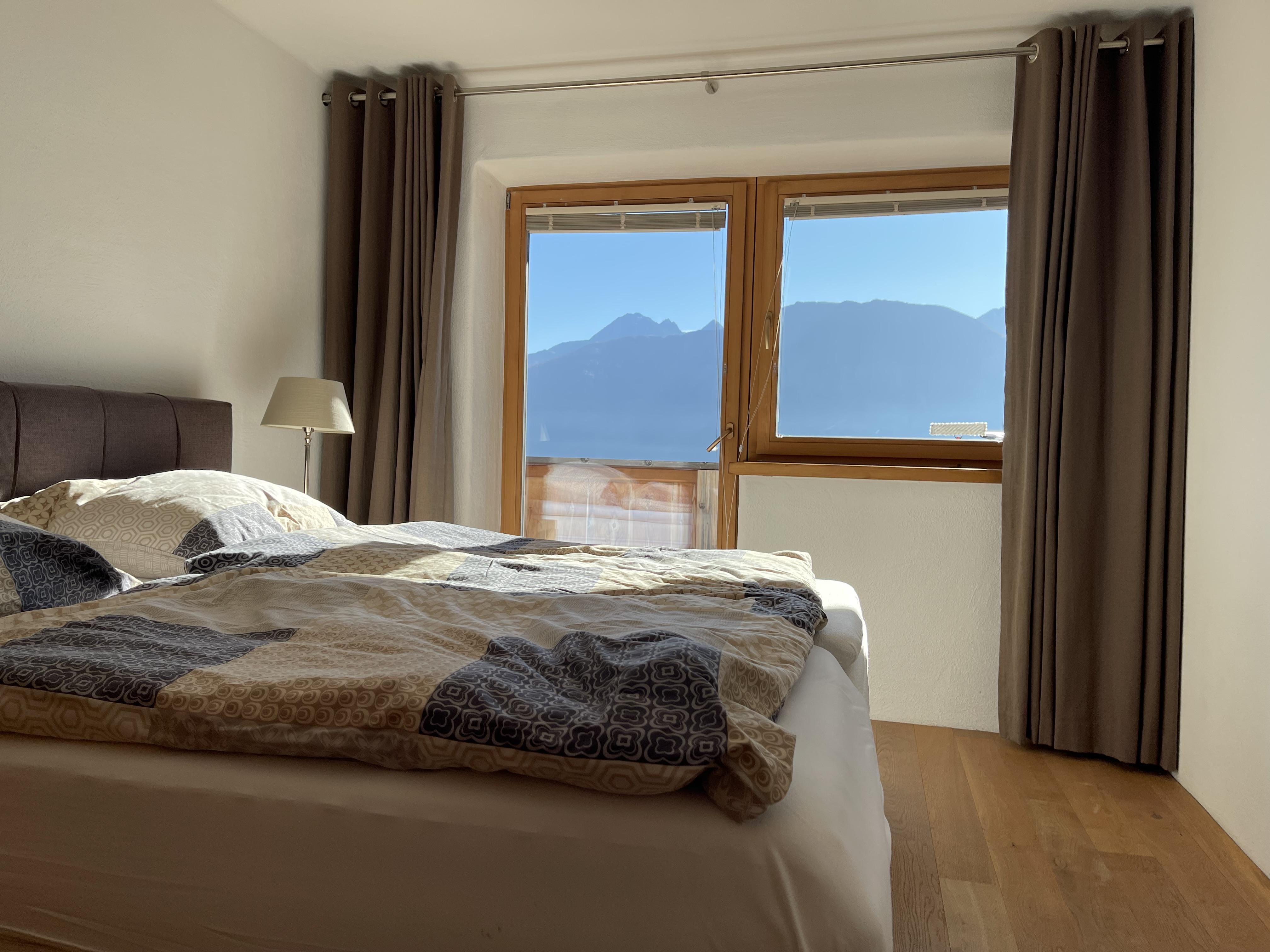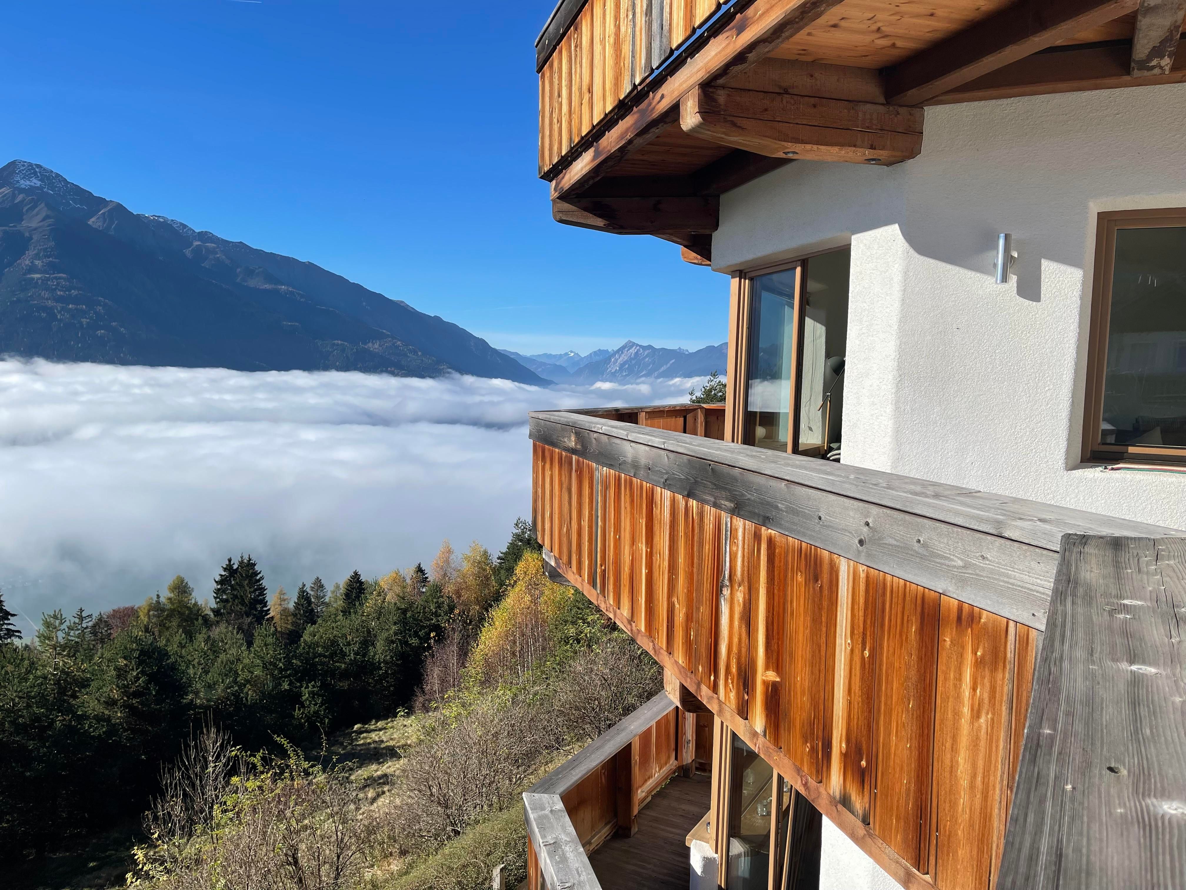 Das 96 m² große moderne Appartement Riepenwand befindet sich in der Residenz Berghof in Mösern mit atemberaubender Aussicht auf die Berge und das 600 Meter niedriger gelegene Inntal.