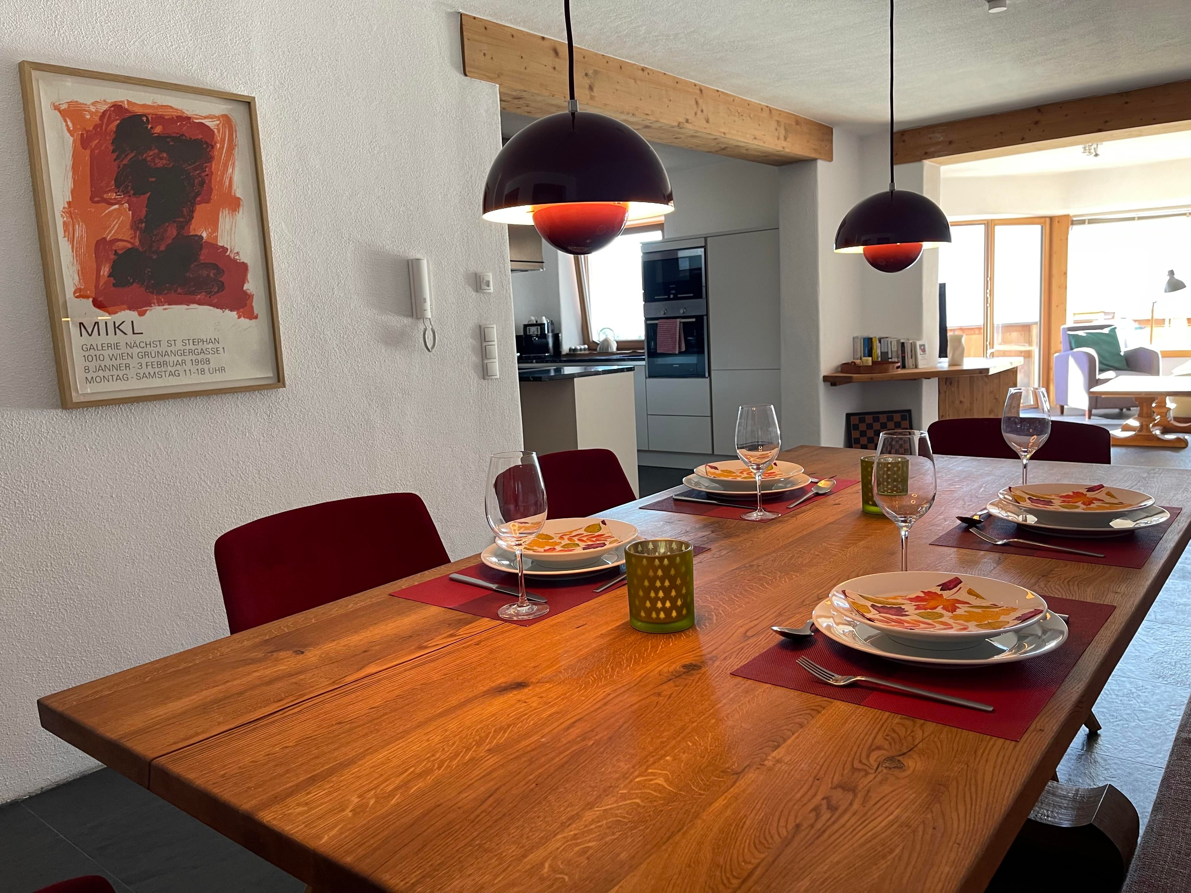 Das Appartement verfügt über einen großzügigen Wohn-Essbereich mit offener Küche, zwei Schlafzimmern mit insgesamt 4 Betten und zwei Badezimmern (jeweils mit Dusche, Waschbecken und WC), Fußbodenheizung, gratis WiFi sowie einen privaten großzügigen Südbalkon mit atemberaubender Aussicht auf die Berge und über das Inntal. Die moderne Küche mit Kochblock ist komplett eingerichtet.
