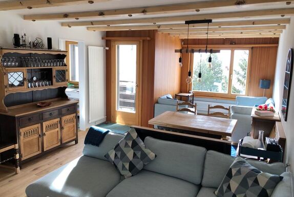 2.5-Zimmerwohnung im 4. Stock, ca. 50m2, in Mehrfamilienhaus. 1 Schlafzimmer mit 1 Doppelbett. 1 Wohnzimmer mit 2 Bettsofas, insgesamt 4 Betten. Bettwäsche, Frottéfwäsche und Küchentücher vorhanden. Separate Küche mit Backofen, Mikrowelle, Toaster, Kaffeemaschine (Nespresso), Wasserkocher, Racletteofen, Fondue Caquelon, Kühlschrank, Geschirrspülmaschine. Badewanne, WC und Haartrockner. Haustiere erlaubt. Nichtraucherwohnung. Fernseher und Radio. Balkon. Parkplatz. Waschmaschine und Wäschetrockner im Haus. Skiraum und Skischuhraum zur Mitbenützung. WLAN.