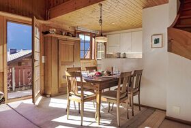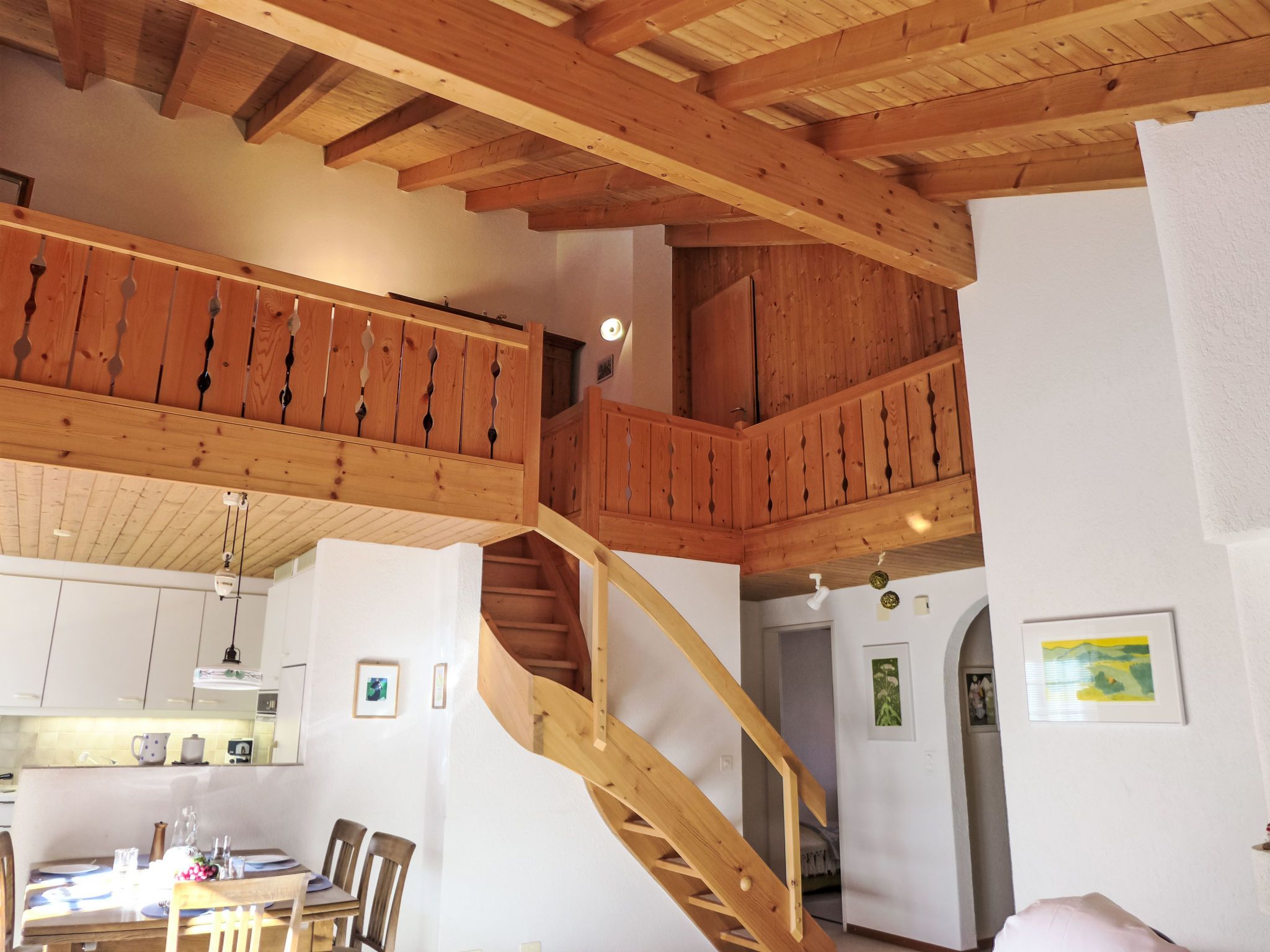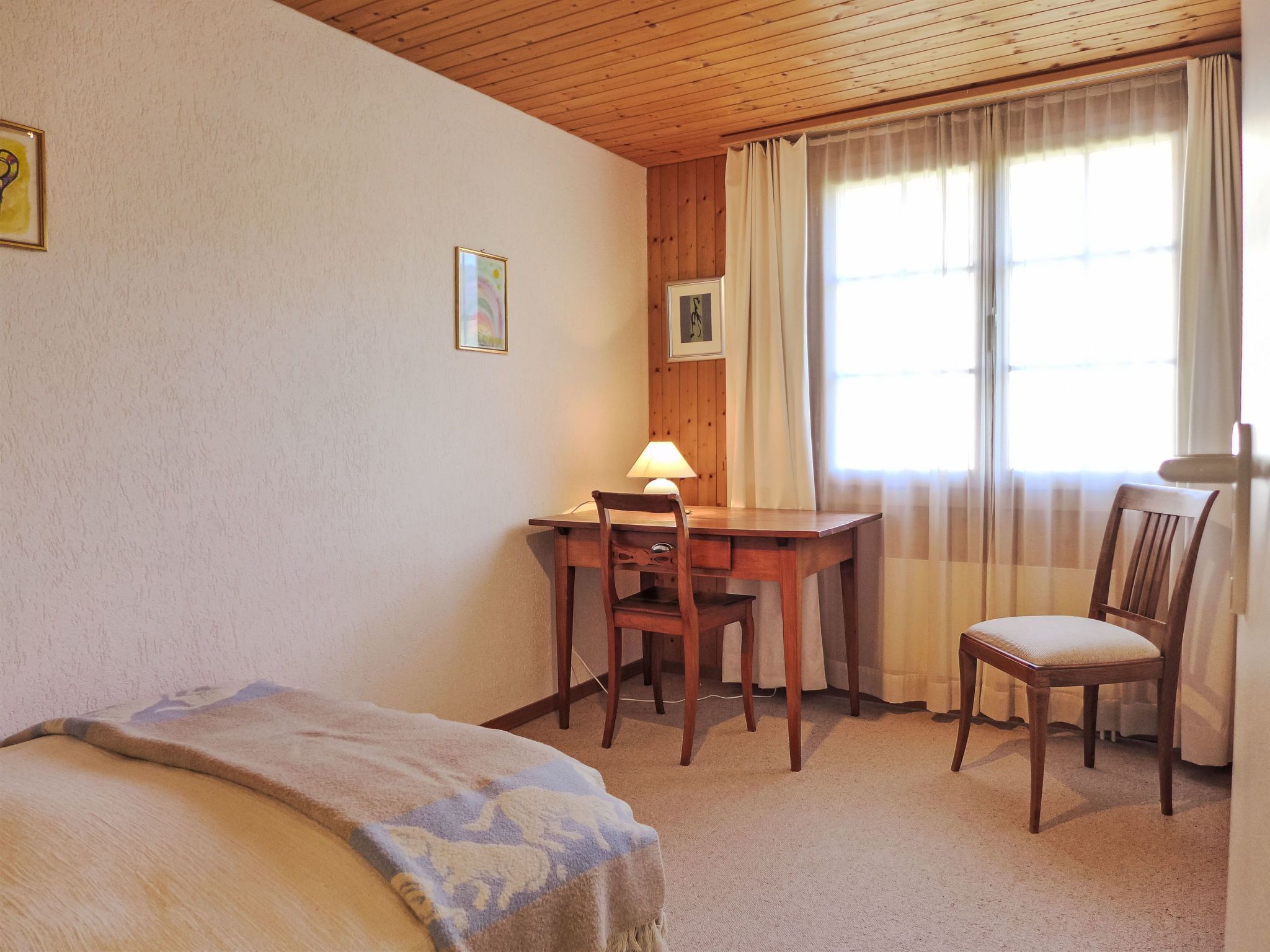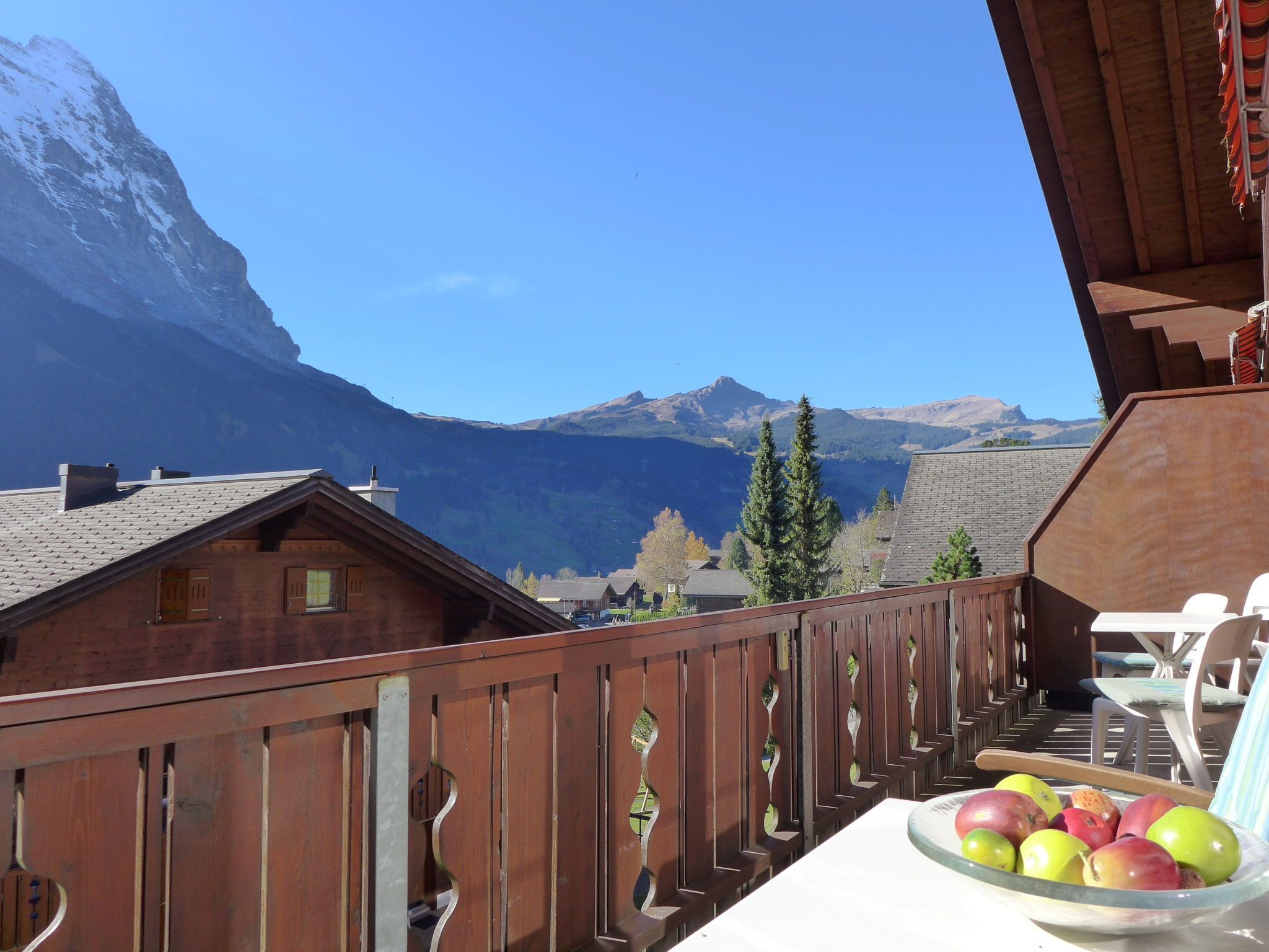 Heidi, 4-Zimmer-Maisonette-Wohnung 120 m2 auf 2 Stockwerken, im Dachgeschoss, Südlage. Geräumig und hell, teilweise abgeschrägt, teilweise renoviert im Jahre 2023, sehr komfortabel und gemütlich eingerichtet: offenes Wohnzimmer mit offenem Kamin (nur Deko), Esstisch, Radio und CD. Ausgang zum Balkon. 1 Zimmer mit 1 franz. Bett (160 cm, Länge 200 cm). 1 kleines Zimmer mit 1 Bett (120 cm, Länge 200 cm). Offene Küche (Backofen, Geschirrspüler, 4 Glaskeramikplatten, Toaster, Wasserkocher, elektrische Kaffeemaschine, Kapseln für die Kaffeemaschine (Nespresso) extra, Racletteofen, Fondue Set (Käse)). Dusche/WC. Obergeschoss: (steile Treppe) abgeschrägte, offene Galerie mit Kabel-TV (Flachbildschirm). 1 abgeschrägtes grosses Zimmer mit 1 franz. Bett (160 cm, Länge 200 cm), Dusche/WC. Teppichboden. Südlage und Westlage. Balkonmöbel. Herrliche Panoramasicht auf die Berge, die Landschaft und Eigernordwand. Zur Verfügung: Haartrockner. Internet (WLAN, gratis). Parkplatz Nr. 18, Höhe 200 cm. Bitte beachten: geeignet für Familien. Nichtraucher-Unterkunft, Nichtraucher-Haus. Kein Fahrstuhl.