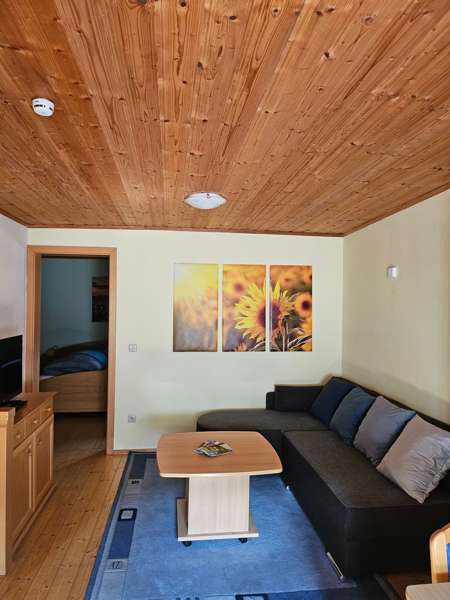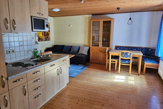 Die gemütliche Ferienwohnung Sonnenblume bietet Platz für bis zu 6 Personen und befindet sich auf dem Kräuterhof in Ringelai. Die Wohnung verfügt über eine Wohnküche, 1 Schlafzimmer mit Doppelbett und Stockbett, Dusche/WC, Sat-TV, Flachbildfernseher, Verdunkelungsrollos an allen Schlafzimmer-Fenstern, im Wohnzimmer befindet sich eine Schlafcouch mit Platz für bis zu 2 Personen. Die Wohnung bietet zusätzlich kostenlosen WLAN Zugang und Parkmöglichkeiten. Des Weiteren steht Ihnen während Ihres Aufenthalts eine eigene Terrasse zur Verfügung. Genießen Sie das Beste aus der Natur in ruhiger und erholsamer Lage.