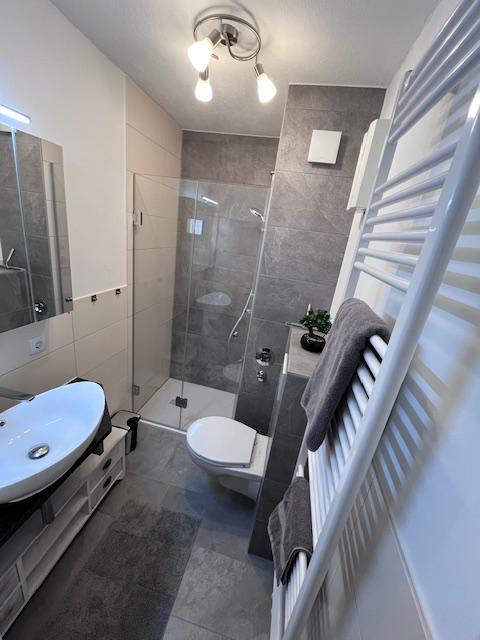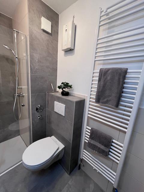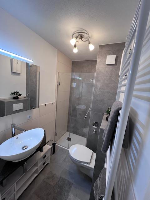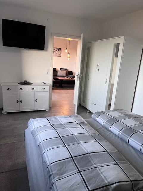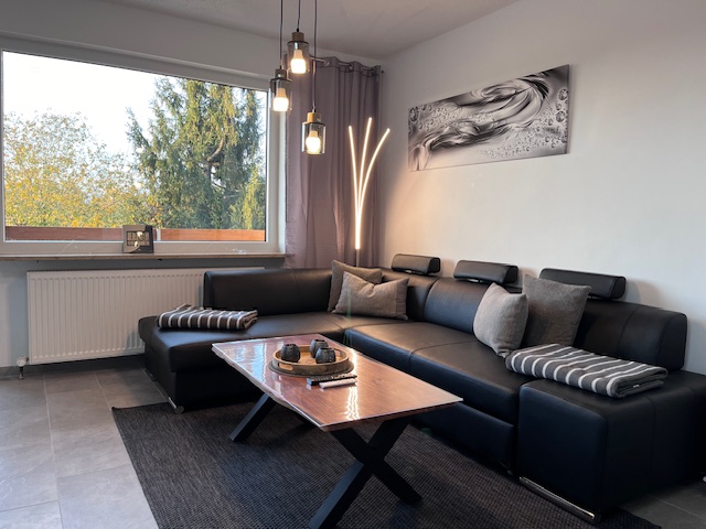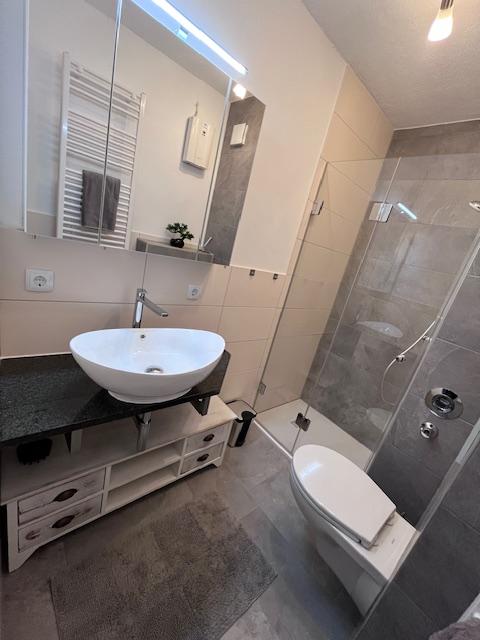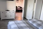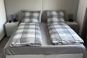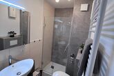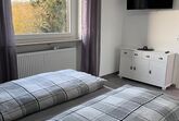 Die vollständig renovierte 2-Zimmer im 1. Stock, ist großzügig geschnitten, ruhig und hell. Vom Eingang geradeaus befindet sich das Wohnzimmer mit TV, WLAN und integrierter Küche. Diese verfügt über alle nötigen Geräte, inklusive Geschirrspüler. Über das Wohnzimmer gelangen Sie auch auf den Südbalkon, auf dem Sie sonnige Stunden genießen werden. Hinter dem Wohnzimmer liegt das Schlafzimmer mit neuem, 1,80m breitem Boxspringbett. Das neu renovierte Bad befindet sich neben dem Eingang im Flur, das über WC und Dusche verfügt. Im Nebenhaus steht auch ein Münzwaschautomat zur Verfügung, den sie gerne mitbenutzen können.Ein neueröfneter Supermarkt ist fussläufig zu erreichen.