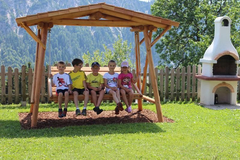 Im Sommer haben wir einen schönen, gepflegten Spielplatz für die Kinder fernab vom Verkehr und zum Wald sind es auch nur ein paar hundert Meter. Die Kinder können gerne unsere Tiere streicheln und beobachten.