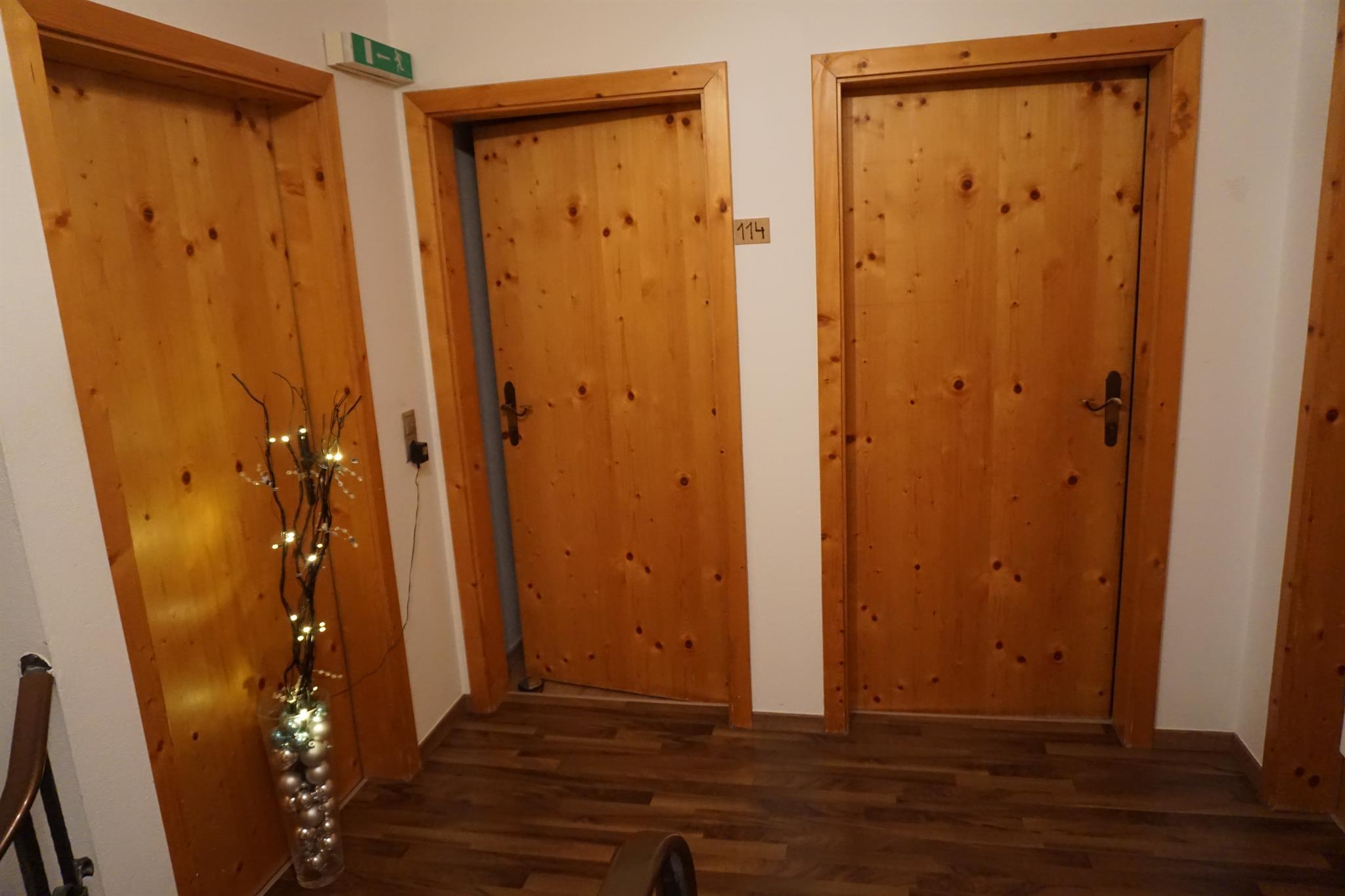 Im Keller haben wir einen Skiraum für die Skischuhe und Skier, der am Morgen bequem erreichbar ist.