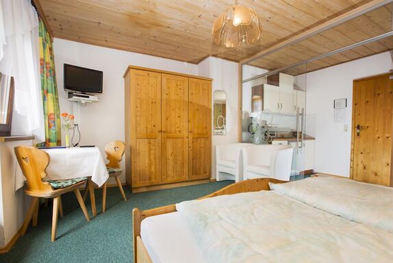 Gemütliche Wohnküche mit mit Wohnschlafraum, Dusche/WC, Sat-TV, Radio, Balkon,