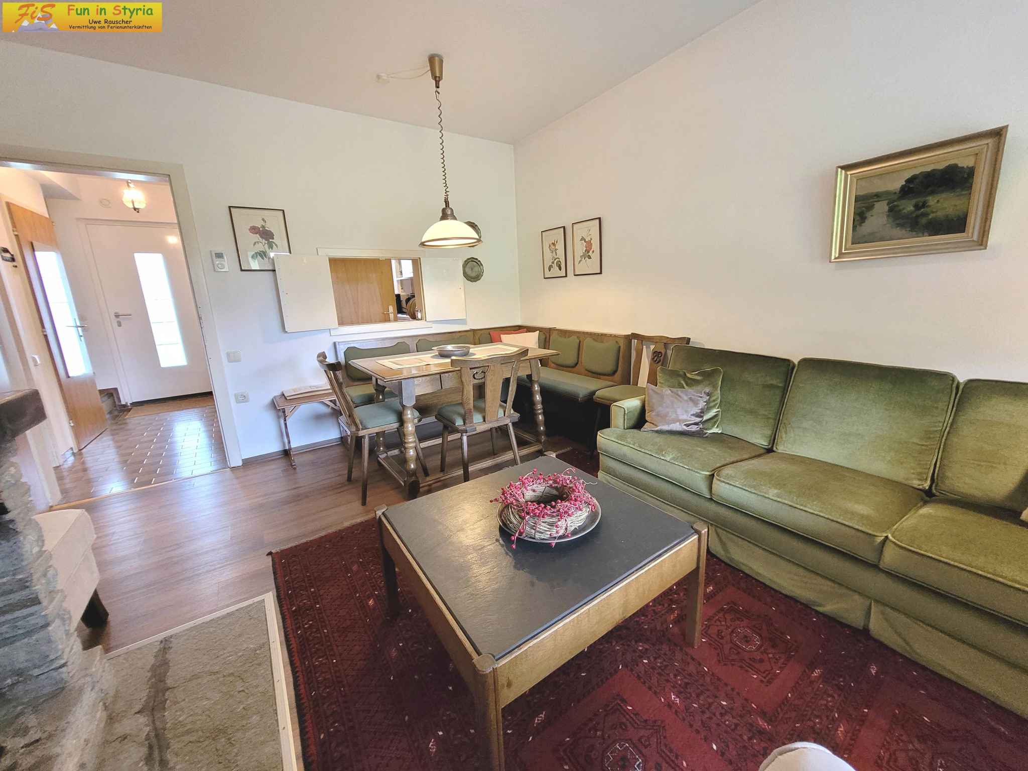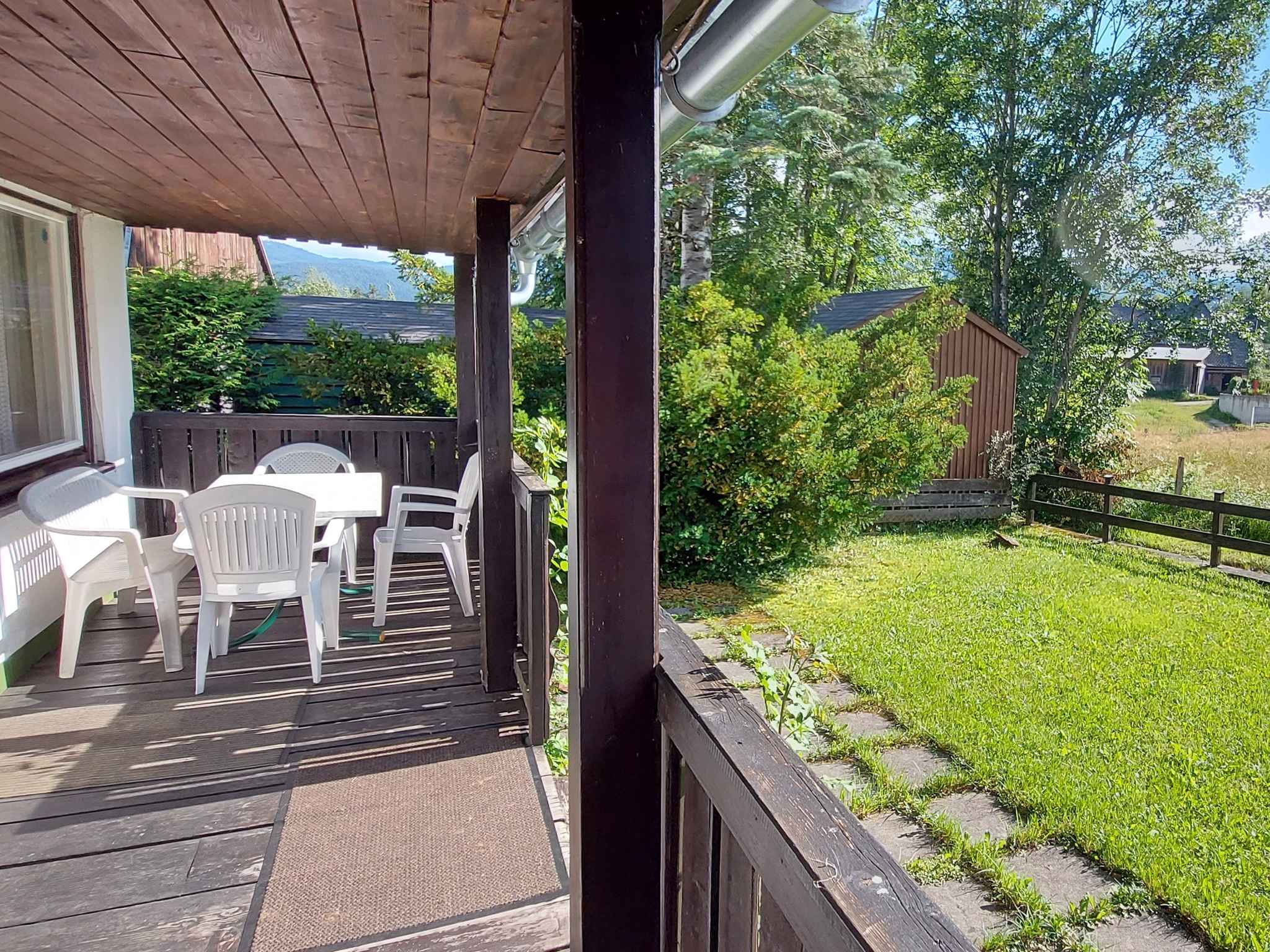 Das Ferienhaus befindet sich in einer Ferienanlage (insgesamt 18 Unterkünfte und 86 Betten) und ist umgeben von einem offenen Gartengrundstück mit Wiese, Bäumen, Blumen und Sträuchern. Doppelstockbungalow Die Anlage verfügt über Internet (WLAN), Terrasse, Skiraum, Liegewiese, Sonnenschirm, Sonnenliege, Gartenmöbel und Grillmöglichkeit. Weitere Ausstattung: Bargeld und EC-CardKreditkarten: Visa, MasterCard, Eurocard.Lage: Bad Mitterndorf, Ortsteil Sonnenalm, 810 mNN. Das einzeln stehende, 1970 erbaute und 2015 renovierte Ferienhaus ist rustikal und im typischen Landesstil eingerichtet. Das Grundstück befindet sich in einer Ferienanlage am Ortsrand. Auch wegen des Ausblicks auf die Berge und der ruhigen und sonnigen Lage ist das Domizil beliebt. In der Ferienhausanlage Sonnenalm gelegen - beruhigte Verkehrszone. Die Zufahrt zum Grundstück erfolgt über eine asphaltierte Nebenstraße. Im Winter sind Schneeketten empfohlen. Am Ferienhaus stehen Ihnen 2 Pkw-Parkplätze auf dem Grundstück zur Verfügung. Die nächste Einkaufsmöglichkeit ist 2 km entfernt, Restaurant 500 m und Ortszentrum 3 km. Bahnhof, Arzt, Apotheke, Bank jeweils 3 km in Bad Mitterndorf. Kino in Liezen 30 km. Thermalbad, Hallenbad, Sauna jeweils 4 km in Neuhofen. Flughafen in Salzburg 99 km. Diskothek in Tauplitz 10 km. Ein Kinderspielplatz ist 3 km entfernt. Bahnlinie 3 km und Hauptstraße 500 m.Im Sommer: Ödensee in Kainisch 7 km, Badestrand mit Wiese, Steinen und Felsen in Kainisch, 7 km von Ihrer Unterkunft entfernt. Ihr vierbeiniger Begleiter ist herzlich willkommen am Hundestrand in Bad Mitterndorf, 4 km. Für die Nautiker unter Ihnen gibt es in Bad Mitterndorf einen Bootsverleih, 4 km. Zur Bootsanlegestelle in Grundlsee sind es 25 km. Petrijünger können in Bad Mitterndorf, 3 km die Angel auswerfen. Weitere Sport- und Freizeitangebote warten auf Sie in der Umgebung. Zum Beispiel Golf in Bad Aussee 12 km. Bad Mitterndorf: Reiten 2 km und Tennis, Minigolf jeweils 3 km. Tauchen, Wassersportmöglichkeiten jeweils 25 km in Grundlsee.Im Winter: Der nächste Skilift befindet sich in 7 km Entfernung in Bad Mitterndorf. Das nächstgelegene Skigebiet Die Tauplitz ist 7 km entfernt und befindet sich in Bad Mitterndorf. Der Skibus fährt 300 m von Ihrem Ferienhaus und ist inklusive. Weiterhin gibt es eine Loipe in Bad Mitterndorf, 500 m und eine Eislaufbahn in Bad Mitterndorf, 3 km. Eine Rodelbahn erwartet Sie in Tauplitz, 7 km. Skiverleih, Skischule jeweils 1500 m in Bad Mitterndorf.
