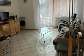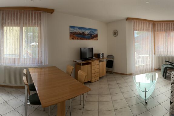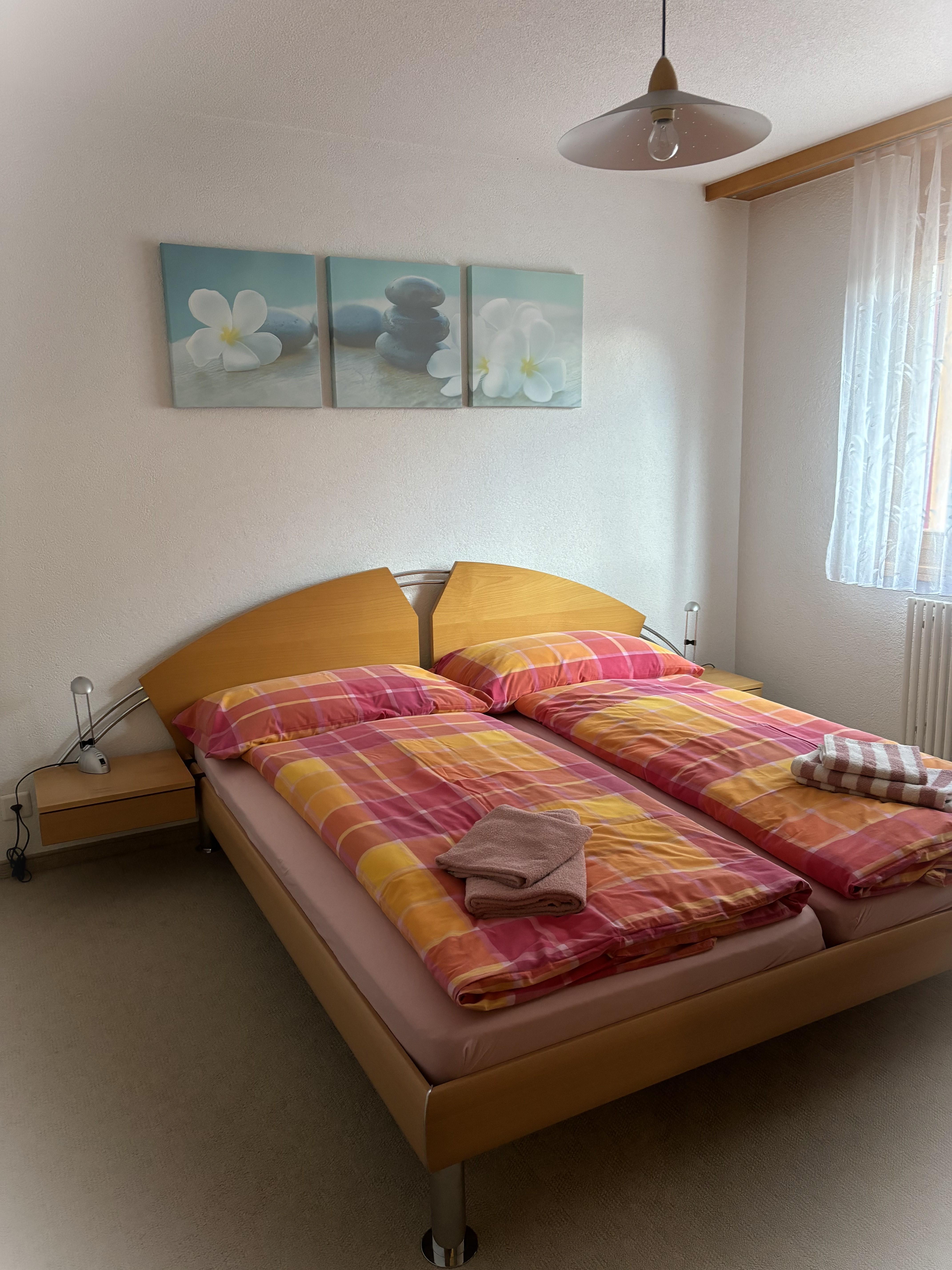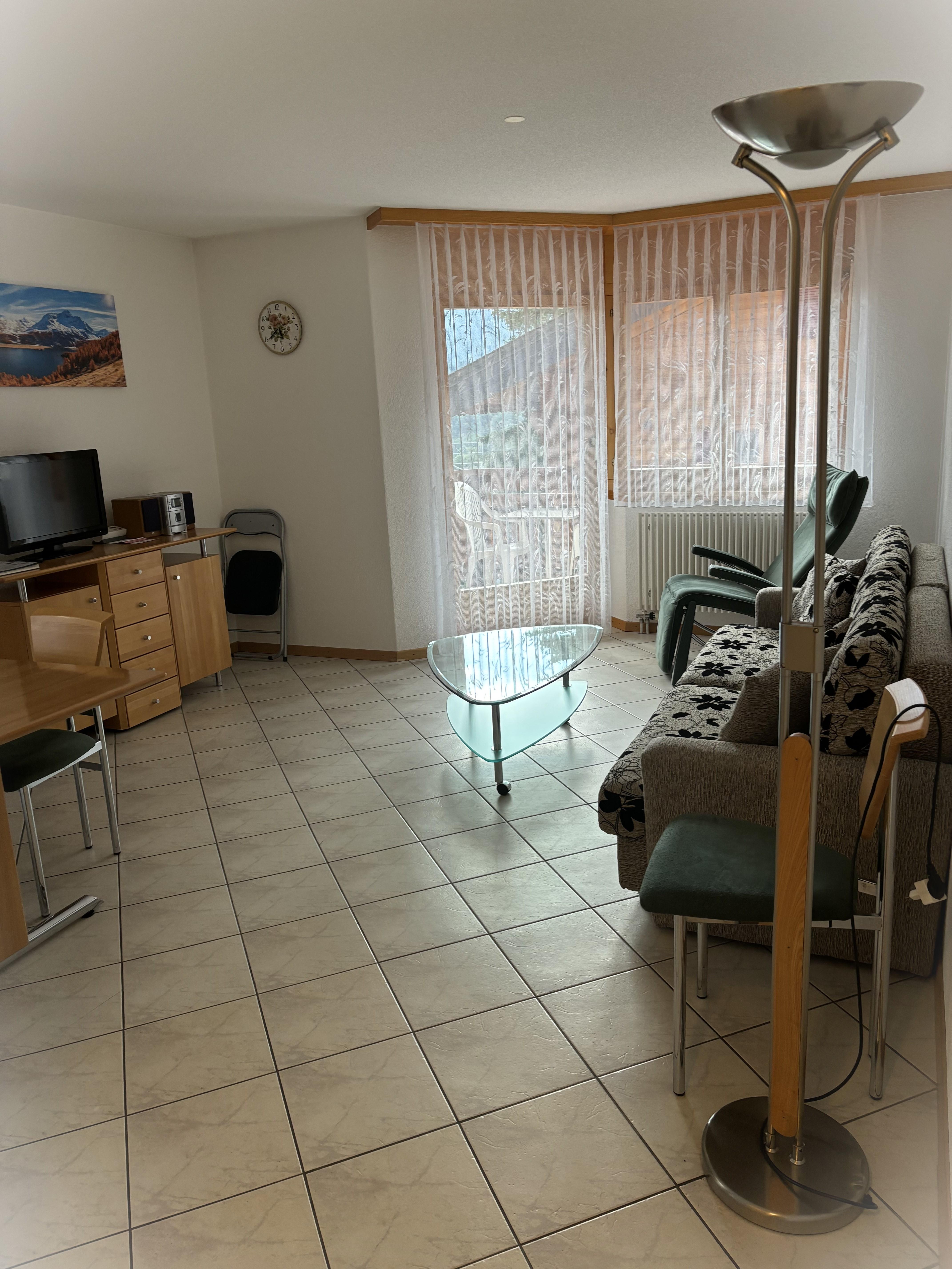 2-Zimmerwohnung im 1. Stock (64m2): grosser Südbalkon, geräumiges Wohn-/Esszimmer, offene moderne Küche mit Geschirrspüler, WiFi, Radio, Kabel-TV, CD-Player, 1 Schlafzimmer mit Doppelbett, 1 Bad/WC. Nichtraucherwohnung. Haustiere nicht erlaubt. Garagenplatz in der Einstellhalle. Abschliessbarer Skischrank im Ski-Raum. Gemeinschaftlicher Wäscheraum inkl. Tumbler im Haus.
