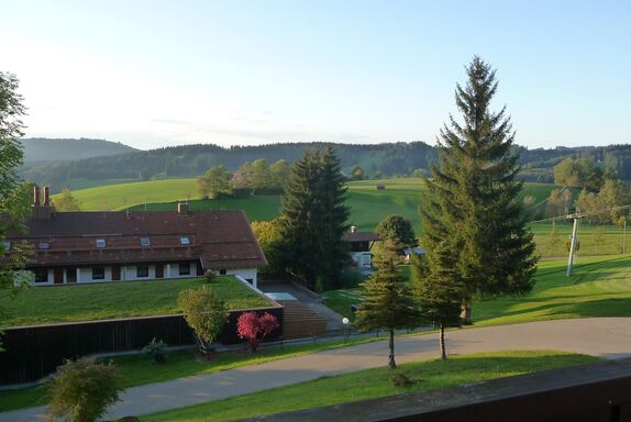 Schönes 2 Zimmer Appartement 45m² im Ferienpark Oberallgäu in Wilhams für 4 Personen im Erdgeschoss mit Balkon. Das Hallenschwimmbad (14x8 m) ist täglich von 09:00-22:00 Uhr geöffnet, die Sauna kann täglich von 16:00-22:00 Uhr (kostenpflichtig) genutzt werden. Spielplätze, Wanderwege, Badeseen in der Nähe. Schöner Ausblick zur Skipiste und Skiloipe.