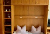 Unsere Ferienwohnung mit Blick auf die Berge ist nach Süden ausgerichtet. Du kannst also fast den ganzen Tag die Sonne auf der Terrasse genießen. Angrenzend an die Terrasse ist auch ein kleines Rasenstück als Liegefläche vorhanden. Die Waschmaschine und der Trockner befinden sich in einem gemeinschaftlich genutzten Raum im selben Gebäude. Du kannst die Geräte durch Einwurf von Münzen nutzen. Eine Sauna befindet sich im Nebengebäude und ist in den Monaten Oktober bis April an den Wochenenden geöffnet. In der Tiefgarage kannst Du Dein Fahrzeug abstellen, sofern es nicht höher als 1,50 ist. In der Tiefgarage befinden sich auch ein Ski-Keller sowie eine Fahrradgarage. Einkaufsmöglichkeiten für den täglichen Bedarf sind nur wenige Gehminuten entfernt. Wander- und Radwege beginnen unmittelbar vor Deiner Haustür.