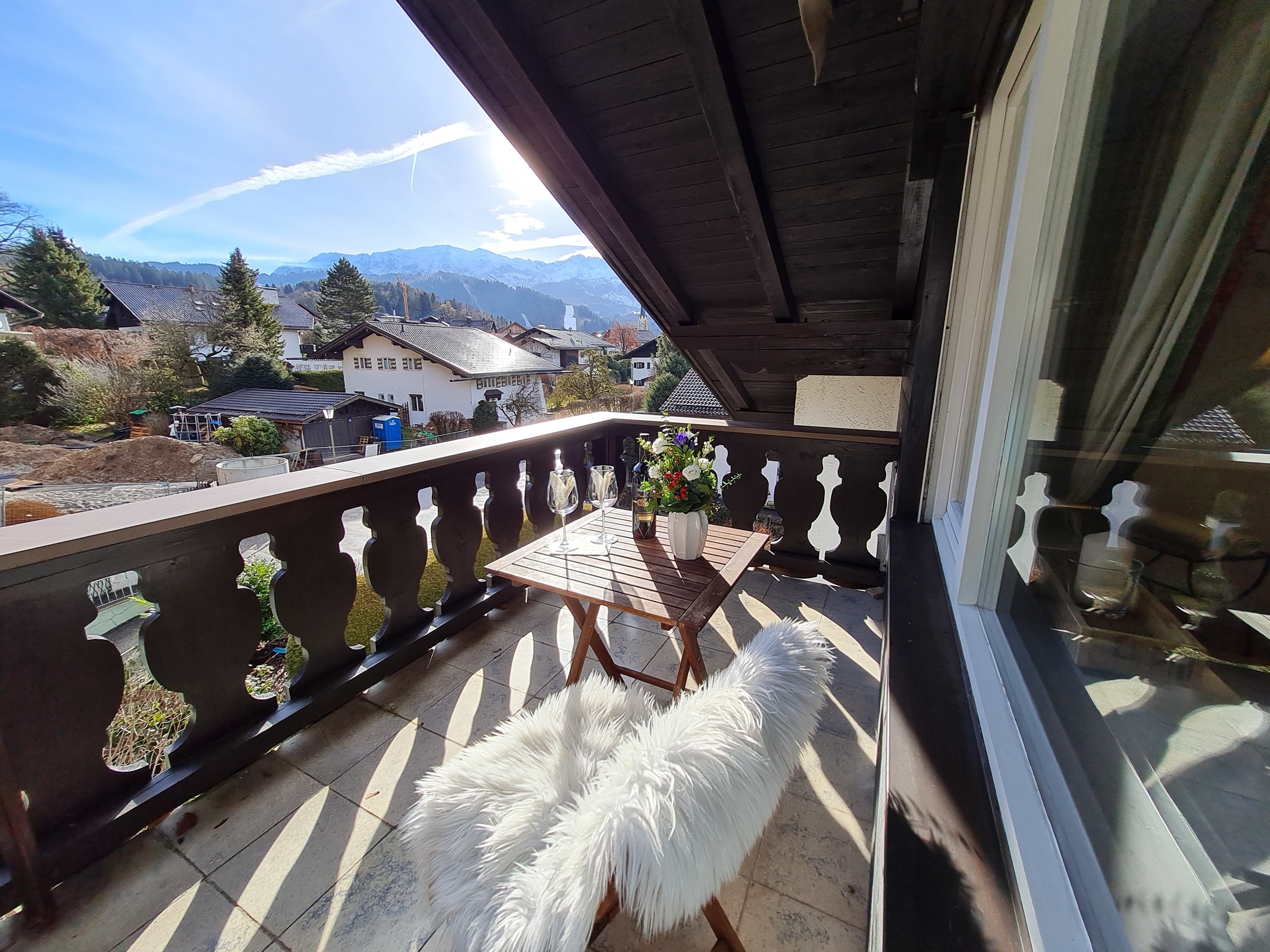 Die Wohnung ist zentrumsnah gelegen. Aber auch die Berge, insbesondere das Wettersteingebirge, befinden sich in der Nähe.