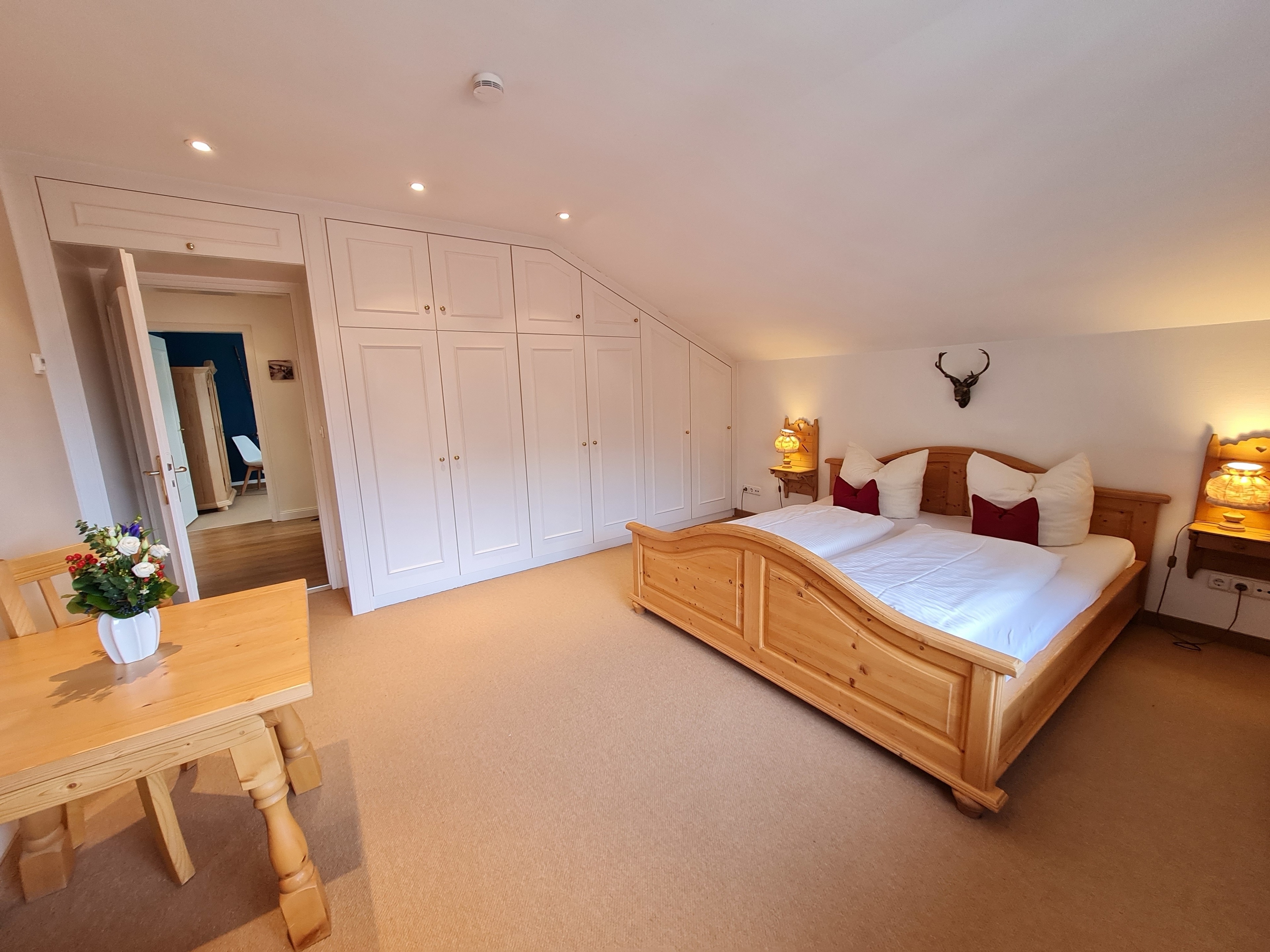 Die äußerst geräumige Ferienwohnung Wettersteinblick bietet perfekte Voraussetzungen, gemeinsame Stunden mit Familie und Freunden zu verbringen. Durch ihre Größe sind aber auch private Rückzugsmöglichkeiten garantiert. In dieser großen Ferienwohnung wird es selbst mit 8 Personen nie eng, sie verfügt über vier Schlafzimmer (drei Doppelbetten und ein Stockbett), eine gutausgestatte großzügige Küche (inklusive Ofen und Spülmaschine, Kaffeemaschine und Eierkocher) mit gemütlicher großer Eckbank