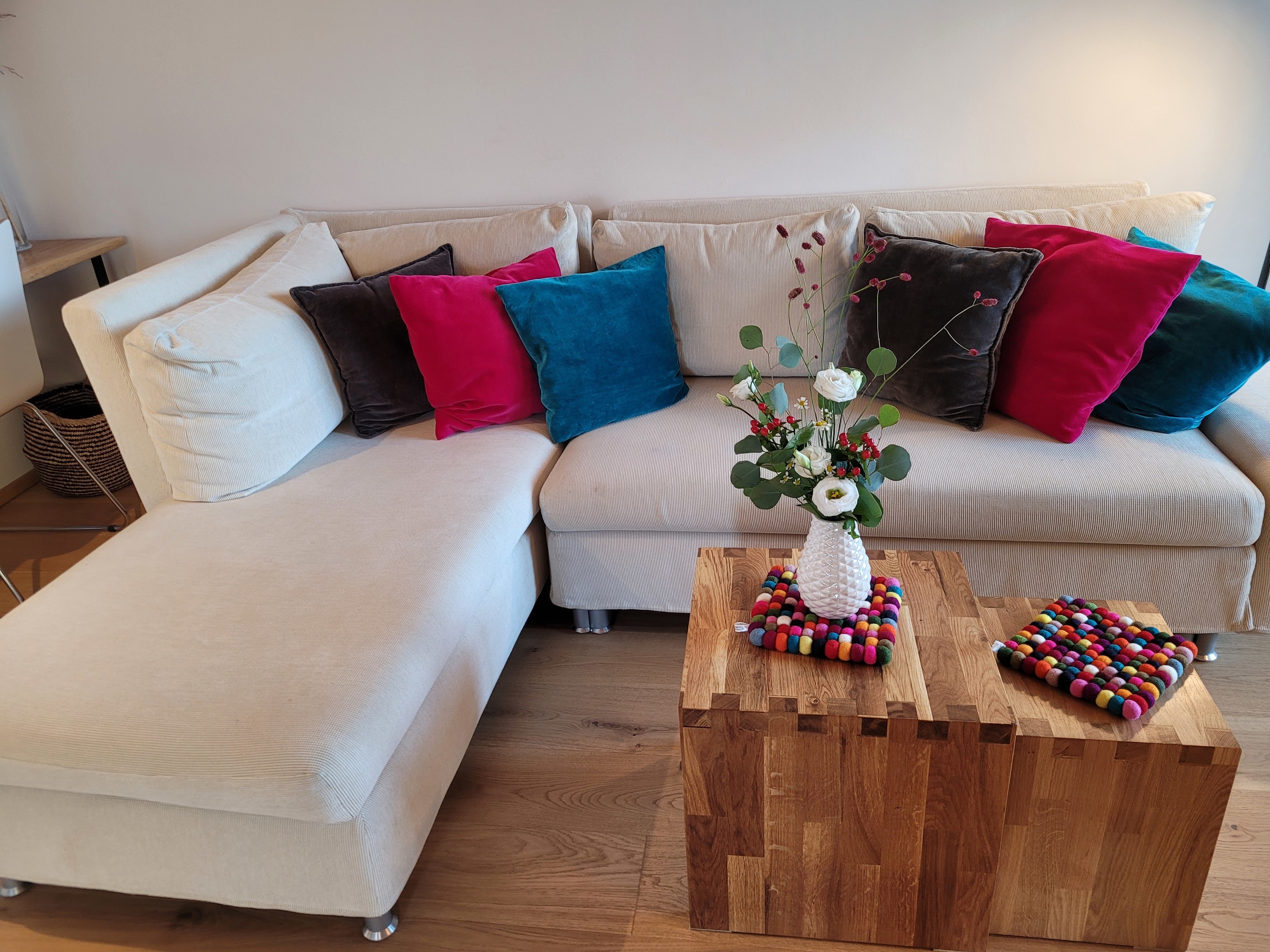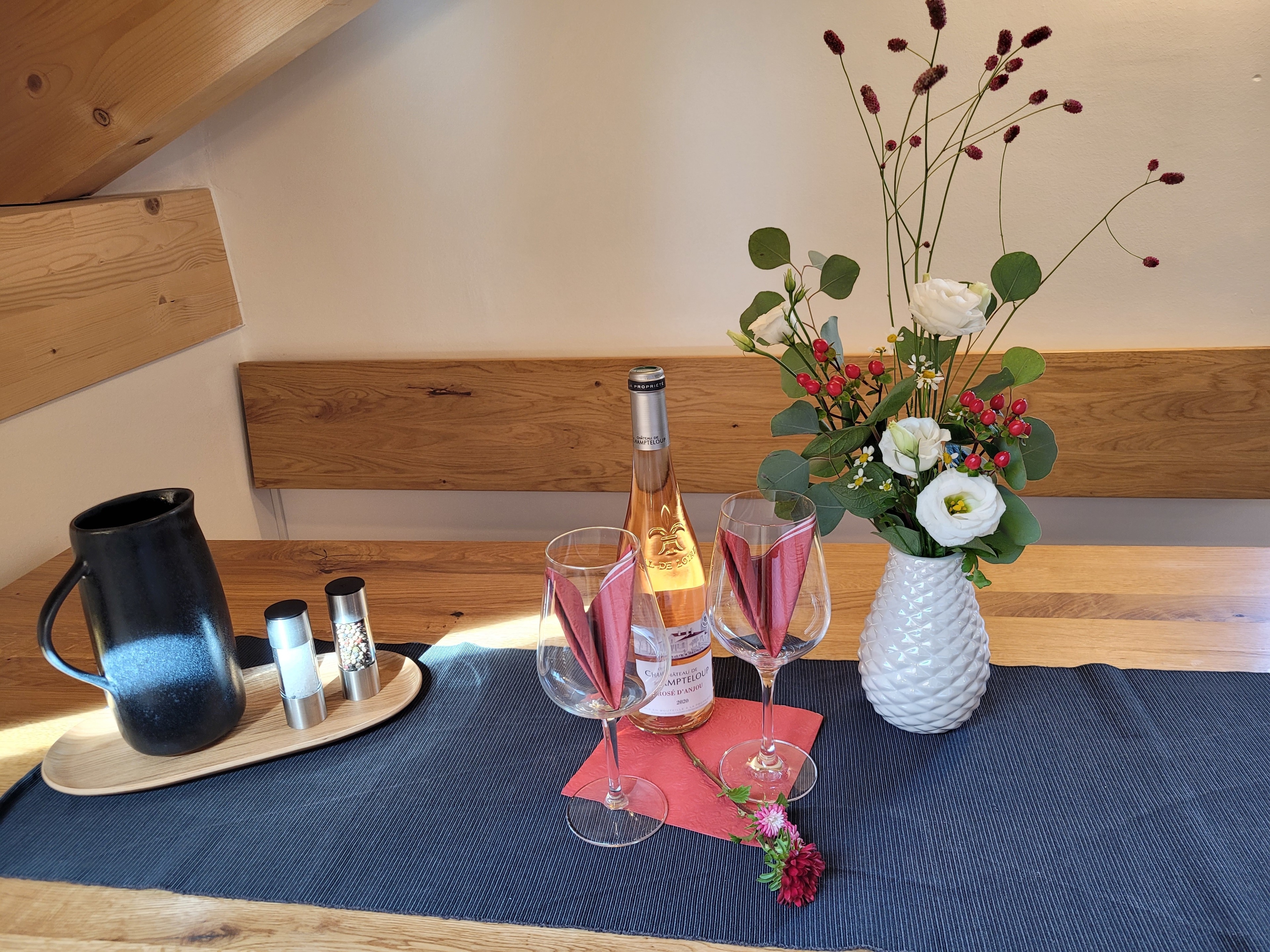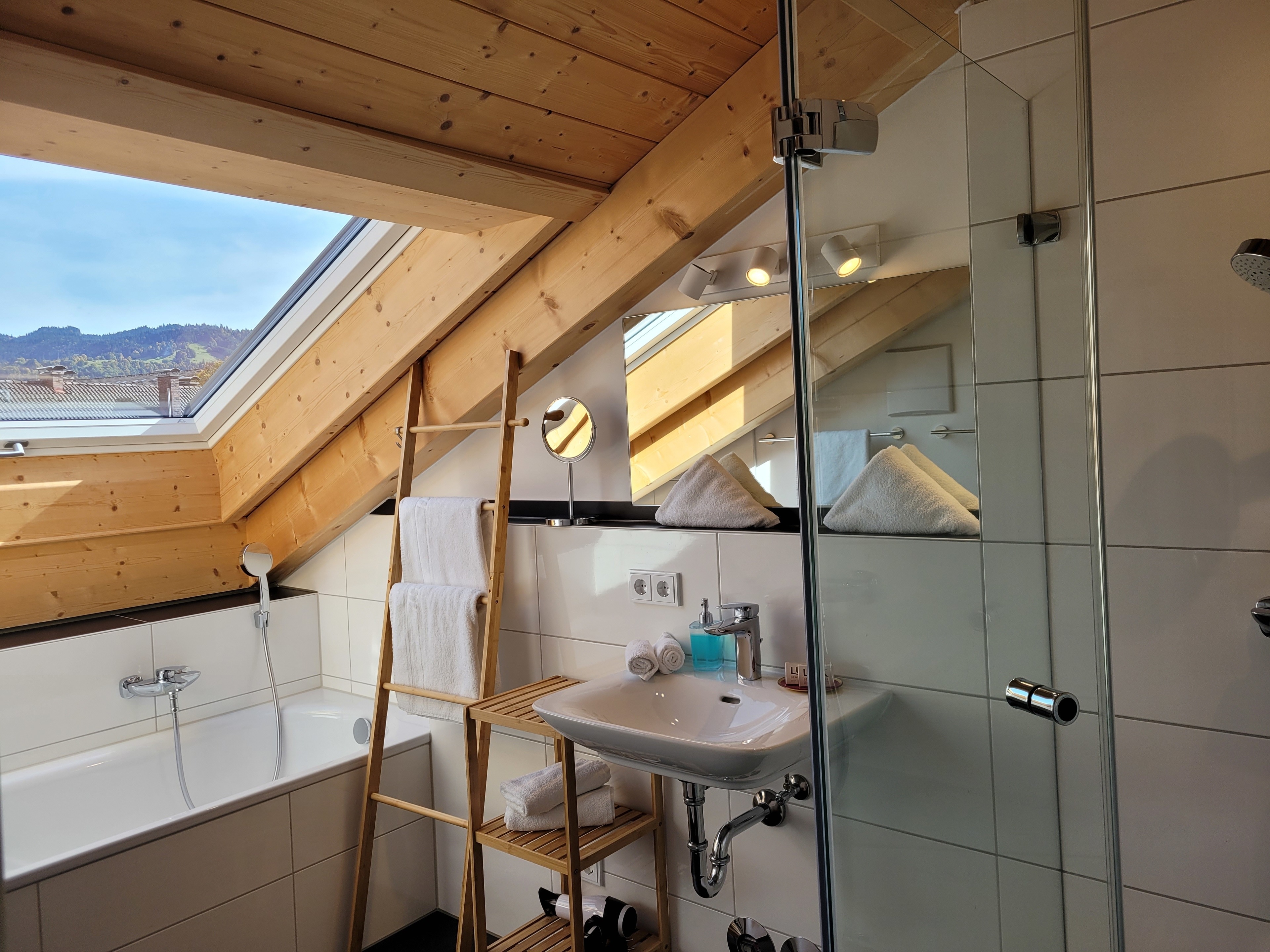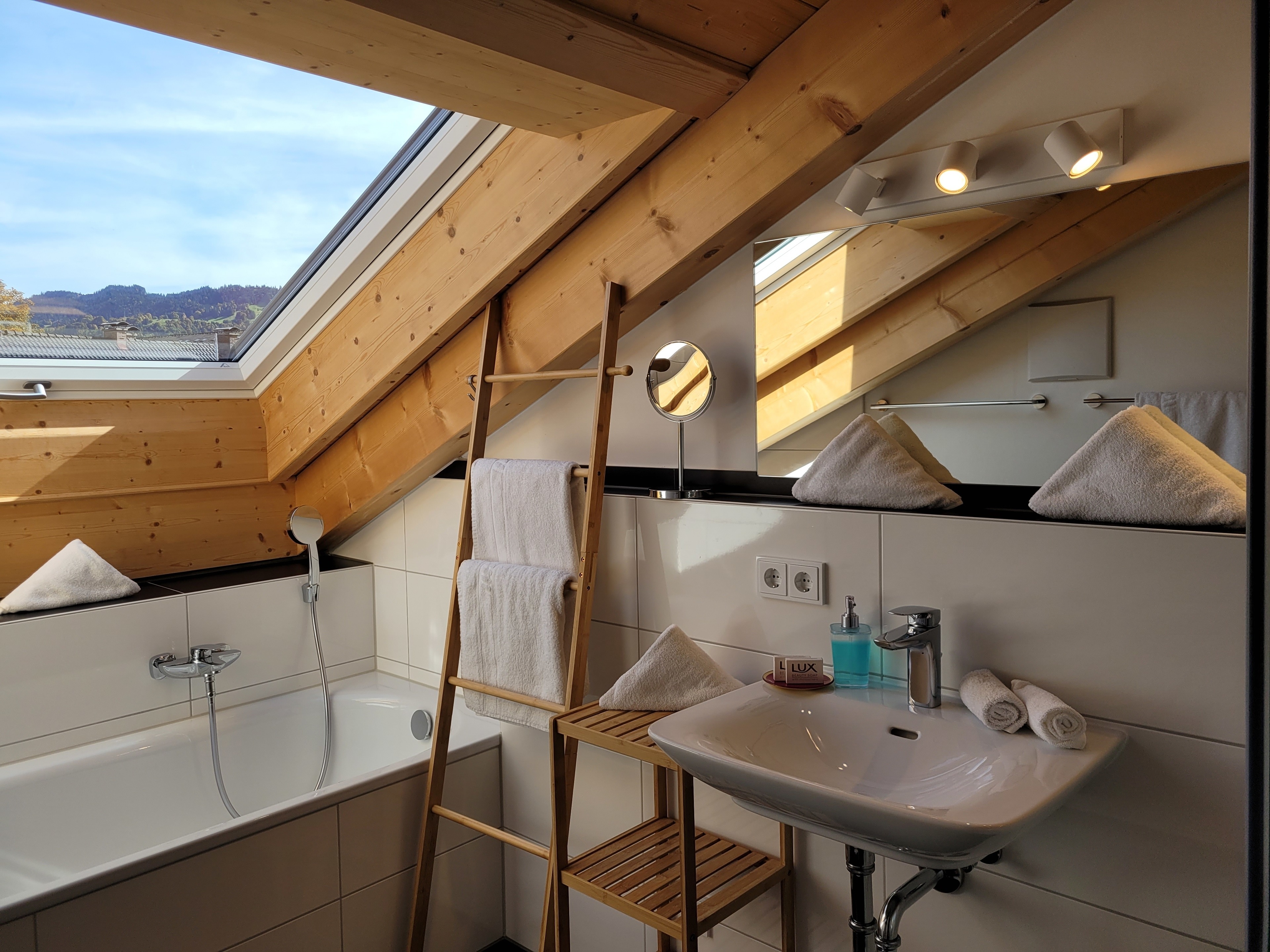 Die qualitativ sehr hochwertig ausgestattete Ferienwohnung bietet angenehmsten Komfort für bis zu 4 Personen. Der hohe offene Dachstuhl, die Dachfenster, die nachhaltigen Eichen Massivholzmöbel und das Eiche-Naturholzparkett mit Fussbodenheizung garantieren eine Wohlfühlgemütlichkeit und strahlen eine alpenländische Atmosphäre aus.