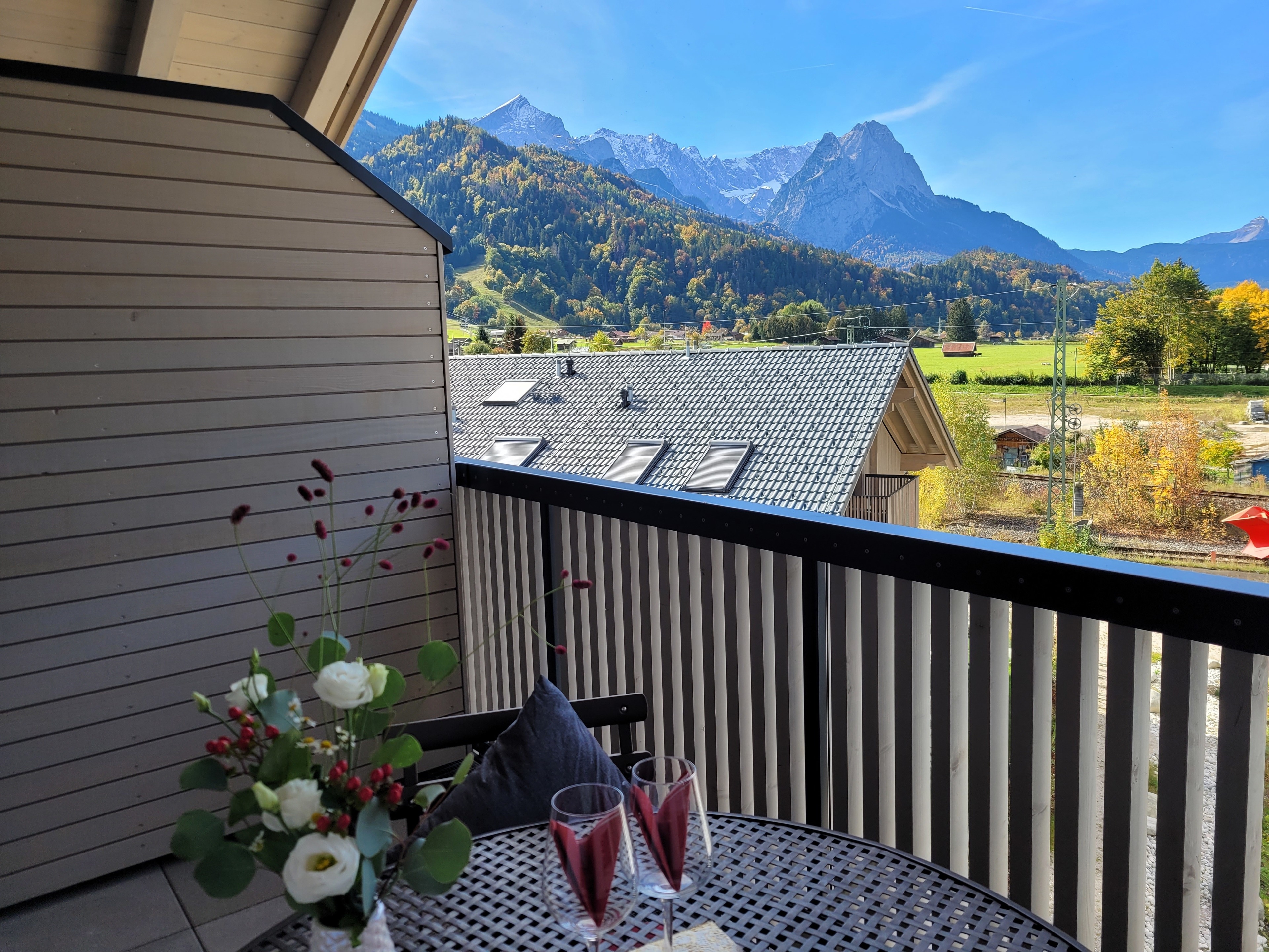 Die 2022 fertiggestellte Dachgeschosswohnung überzeugt durch eine durchdachte Raumaufteilung in 3 Zimmer und zusätzlich einer Loggia in Westausrichtung. Diese eröffnet einen herrlichen Blick auf auf das Wettersteinmassiv mit Alpspitze und Zugspitze.