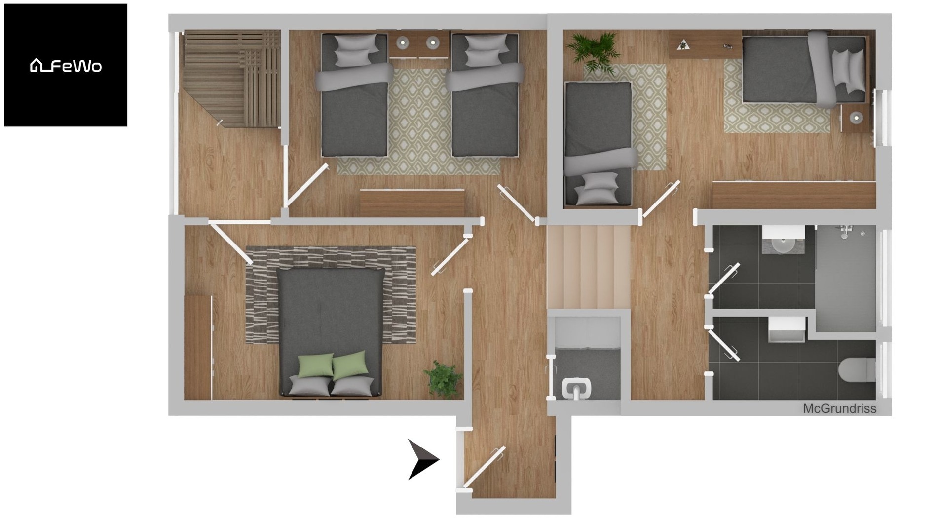 - 2 Zimmer mit jeweils 2 Einzelbetten