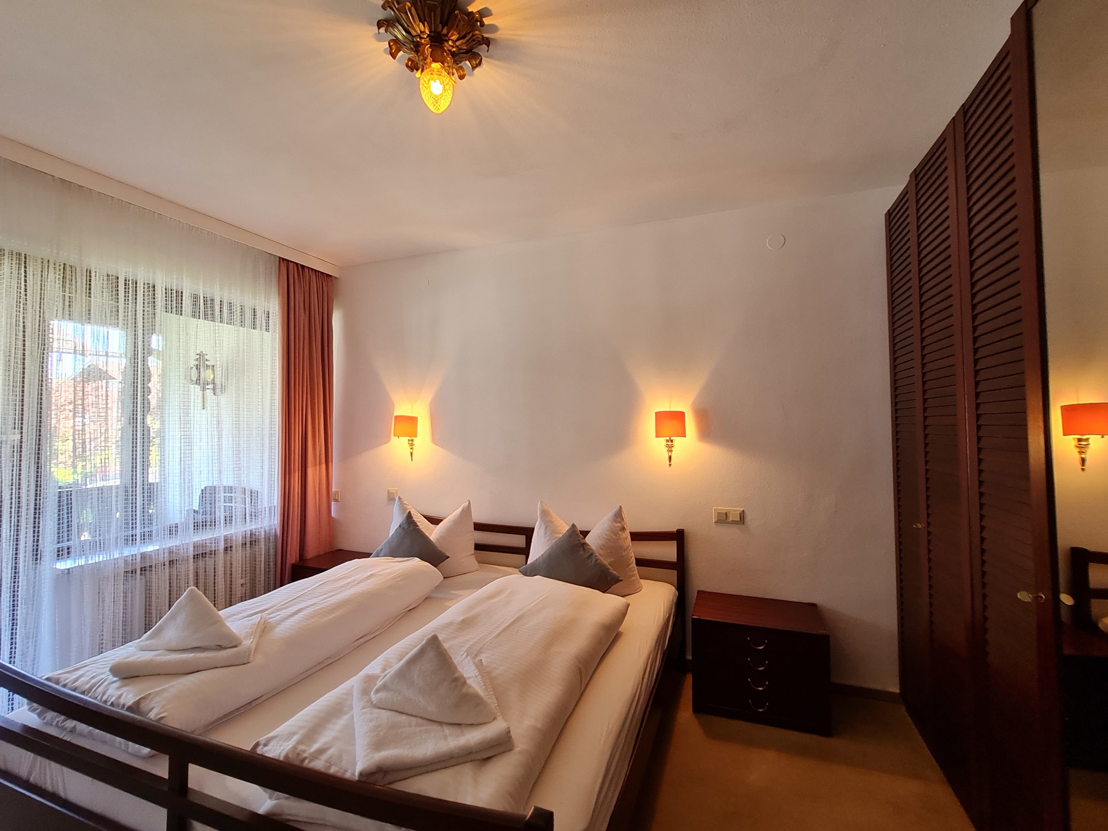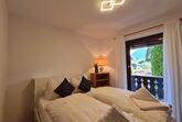 Der weitläufige Balkon ist sowohl vom Wohn- und Essbereich, als auch von der Küche und vom Schlafzimmer aus zu erreichen. Ebenso verfügt das zweite Schlafzimmer auf der Ostseite über einen separaten Balkon. So können Sie der Sonne hinterher wandern und haben zusätzlich einen traumhaften Ausblick: Die Gebirgskette rund um die Zugspitze erstreckt sich vor Ihnen und verspricht den perfekten Urlaubsflair. Unsere Wohnung „ALPENECK“ verfügt über zwei Schlafzimmer. Auch im zweiten Schlafzimmer finden bis zu zwei Personen ausreichend Platz.