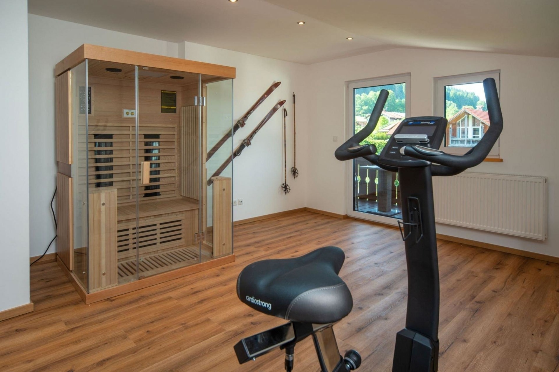 Sportzimmer mit Infrarotkabine für 2 Personen, Stepper, Trimmrad und Sportspiegel mit sämtlichen Programmen (Krafttraining, Yoga, etc.)