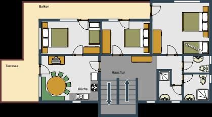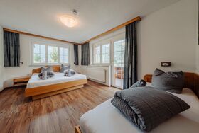 Mit 90 m² bietet Dir unsere größte Nichtraucherwohnung im 1. Stock Platz für bis zu 9 Personen. Du hast 3 Schlafzimmer, 2 Duschen und 2 WCs. Die sonnige Terrasse und der Balkon mit Gartengarnituren laden zum Entspannen ein. Ideal für Familien oder Gruppen – gemütlich, geräumig und bestens ausgestattet.
