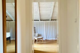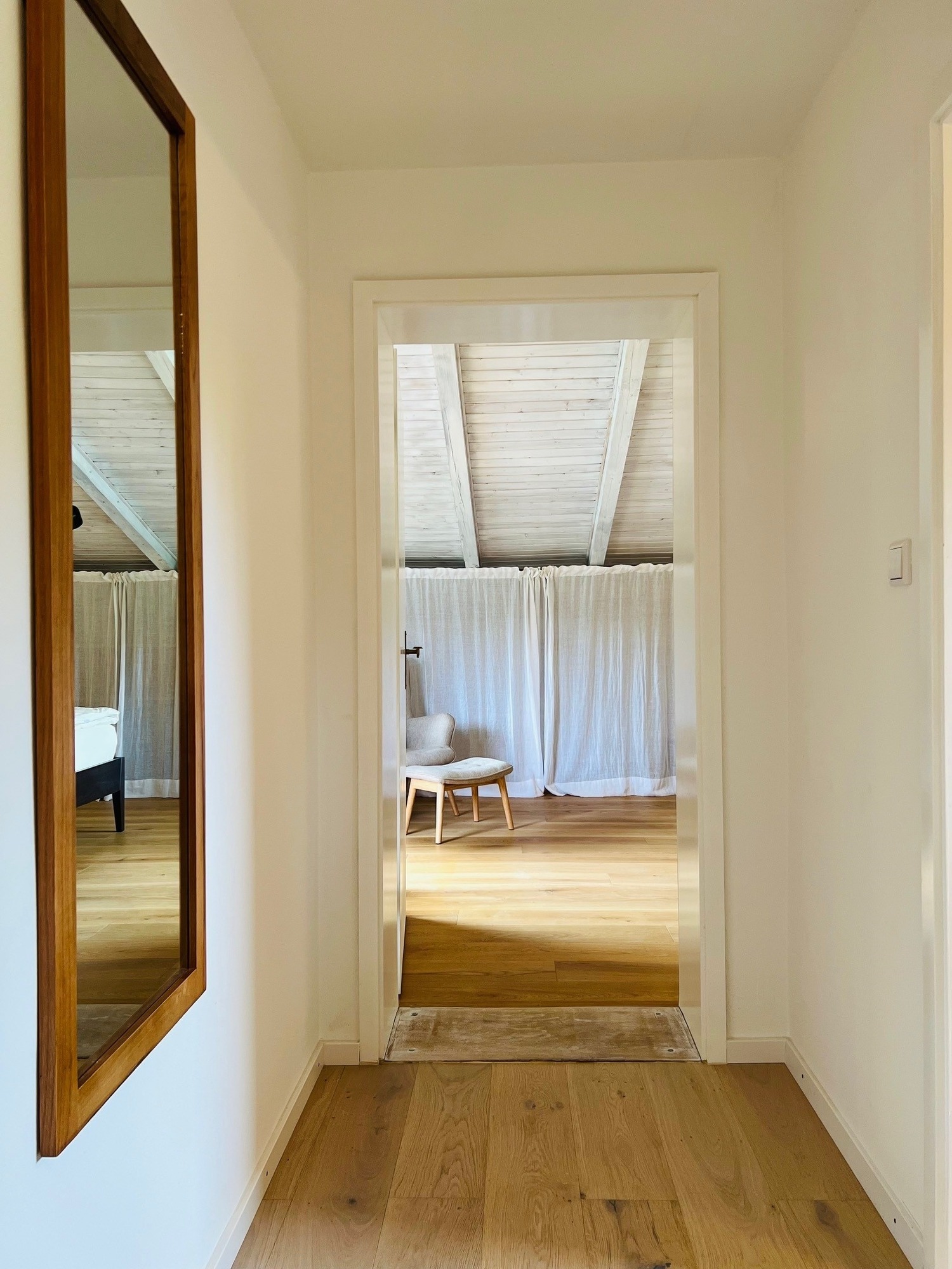 Das Schlafzimmer ist ein gemütlicher Rückzugsort und verspricht erholsame Nächte. Die sanften Klänge der Natur und die frische Landluft lassen Sie tief schlafen und am nächsten Morgen ausgeruht und voller Energie erwachen.