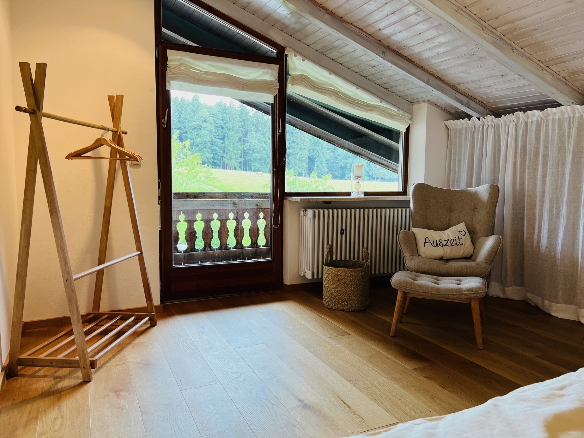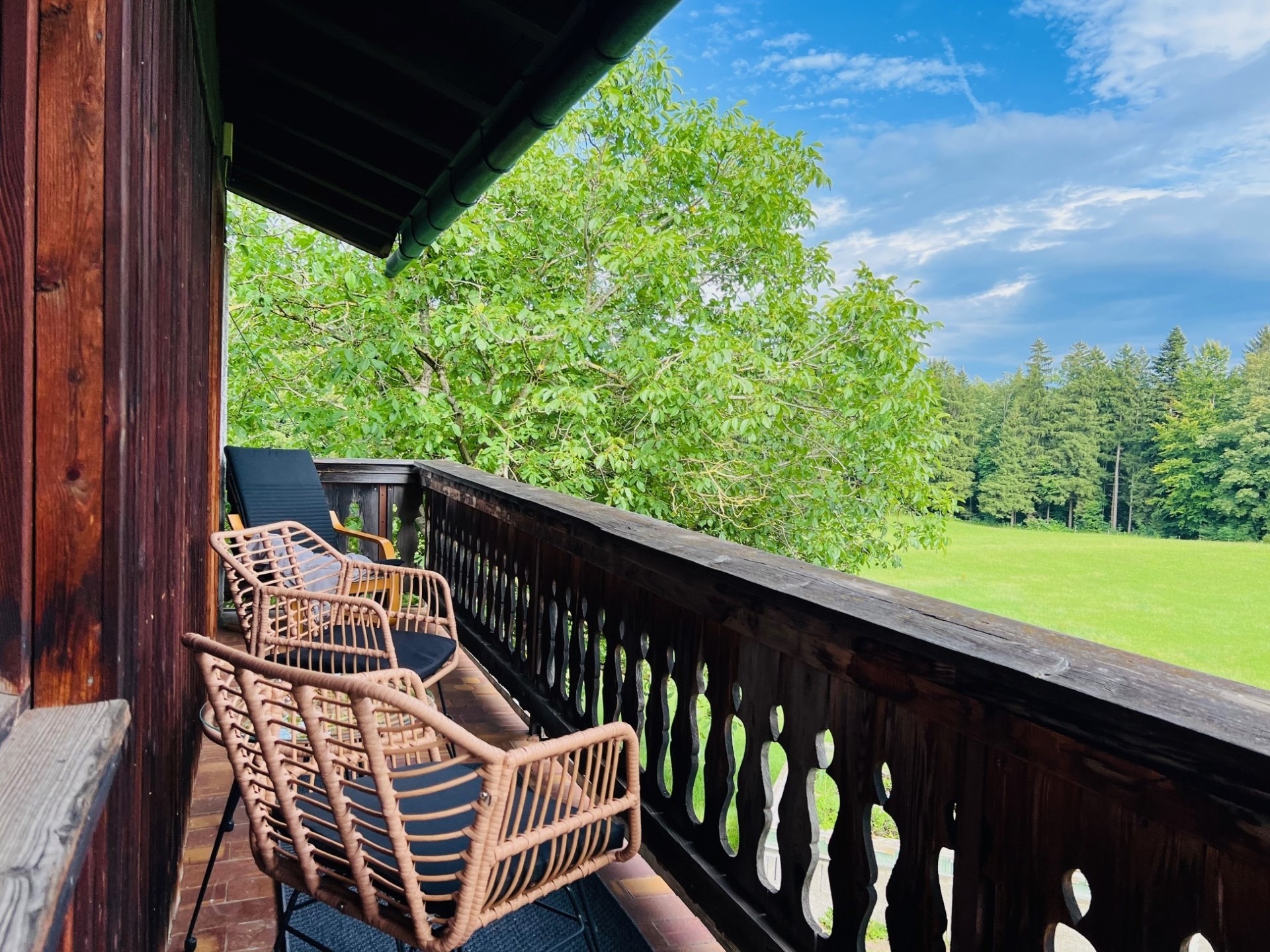 Ein absolutes Highlight unserer Ferienwohnung ist der Balkon, von dem aus Sie einen atemberaubenden Blick auf die umliegende Landschaft haben. Genießen Sie hier Ihr Frühstück in der Morgensonne oder lassen Sie den Tag bei einem Glas Wein unter dem Sternenhimmel ausklingen.