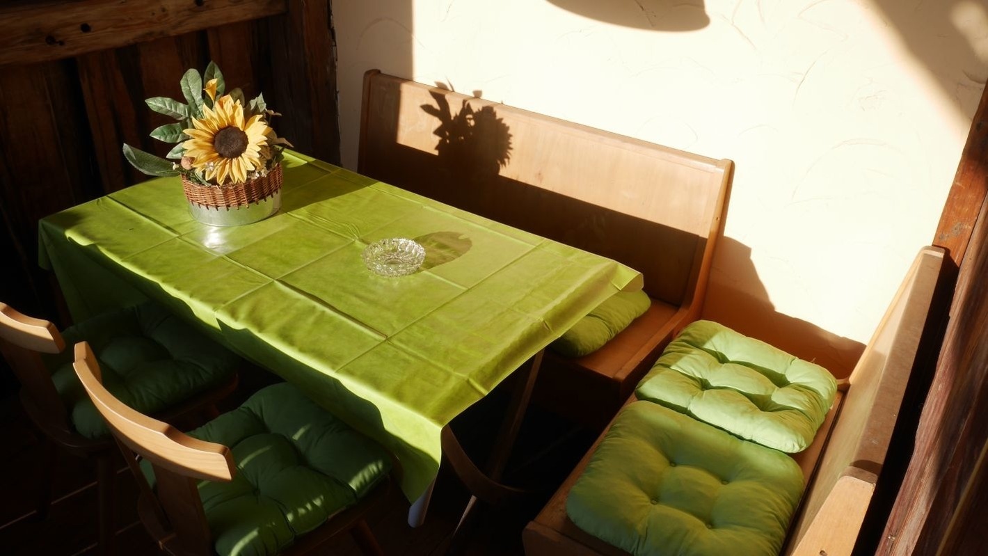 Im Essbereich finden 6 Personen auf einer gemütlichen eingebauten Eckbank Platz.