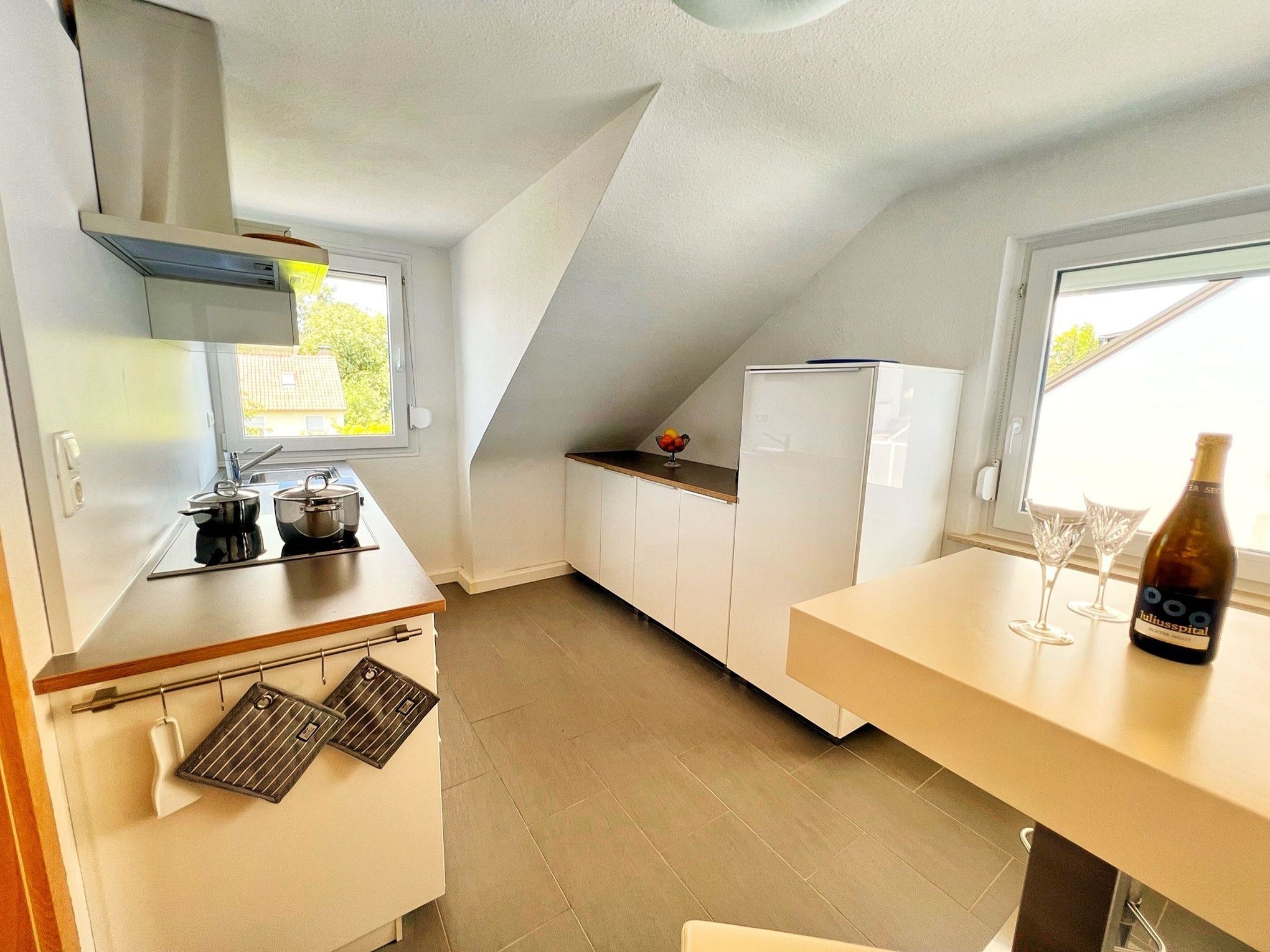 Die Wohnung verfügt über eine sehr gut ausgestattete Küche, in der Sie Ihre Lieblingsgerichte zubereiten können. Hier finden Sie alle notwendigen Utensilien, wie Herd, Backofen, Kühlschrank und Geschirrspüler. Eine kleine Auswahl an Tee steht für Sie bereit sowie eine Nespresso-Kaffeemaschine für erlesenen Kaffeegenuss.