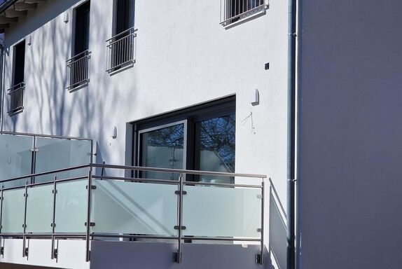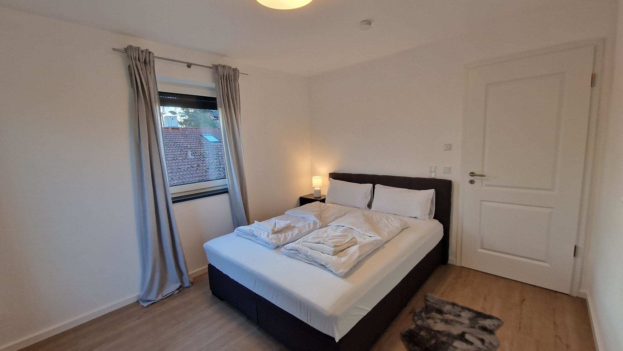 Das großzügige Wohnzimmer mit Essbereich und offener Küche lässt sich durch bodentiefe Schiebefenster um einen geräumigen Balkon erweitern, der Ihnen einen wunderschönen Blick ins Grüne bietet. Alle Schlafzimmer sind mit elektrischen Rolläden ausgestattet und können komplett verdunkelt werden. WLAN kostenfrei im Haus verfügbar