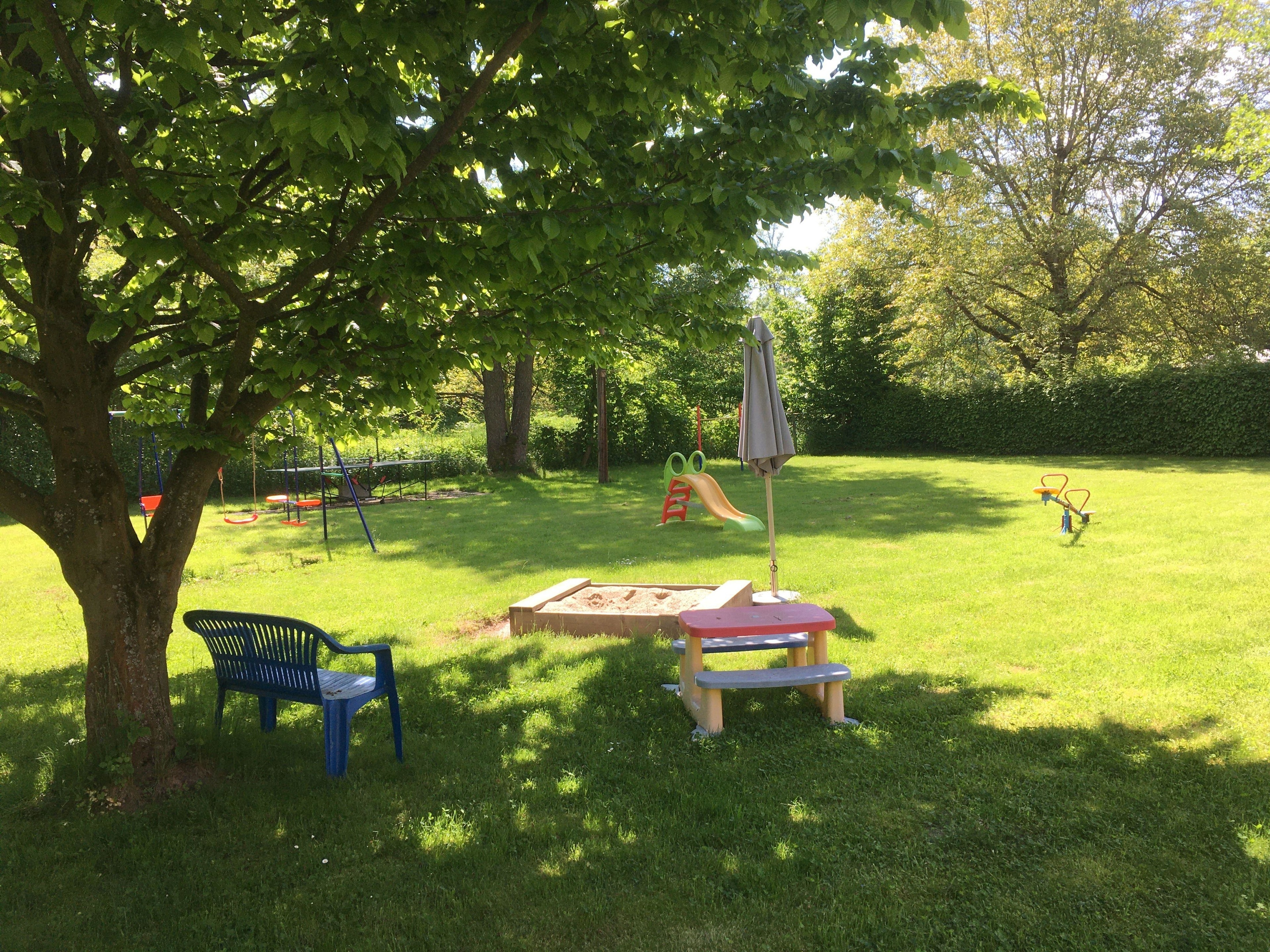 Vor Ihrem Ferienhaus ist eine große Terrasse mit Gartenmöbel und Grill. Im Anschluß der Große Garten mit Spielhütte, Tischtennisplatte, Tischfußball, Großtrampolin und viele Spielgeräte. Der Parkplatz befindet sich direkt vor der Anlage. Ihre mitgebrachten Fahrräder können Sie in einem abschließbaren Fahrradraum unterbringen. Das Grundstück ist komplett eingezäunt.
