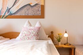 Das Doppelzimmer in unserer gemütlichen, familiengeführten Pension bietet einen malerischen Blick auf die Berge und liegt in der Nähe des Chiemsees. Mit einer liebevollen Einrichtung und warmen Atmosphäre ist es ideal für einen erholsamen Aufenthalt. Die Pension befindet sich am Ortsrand und bietet eine bequeme Anbindung an die A8, sodass Sie die Umgebung problemlos erkunden können.