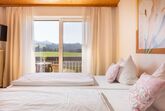 Genießen Sie Ihren Aufenthalt in unserem gemütlichen Doppelzimmer mit Südlage und herrlichem Blick auf die Berge vom eigenen Balkon aus.