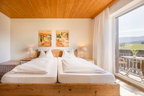 Genießen Sie Ihren Aufenthalt in unserem gemütlichen Doppelzimmer mit Südlage und herrlichem Blick auf die Berge vom eigenen Balkon aus.
