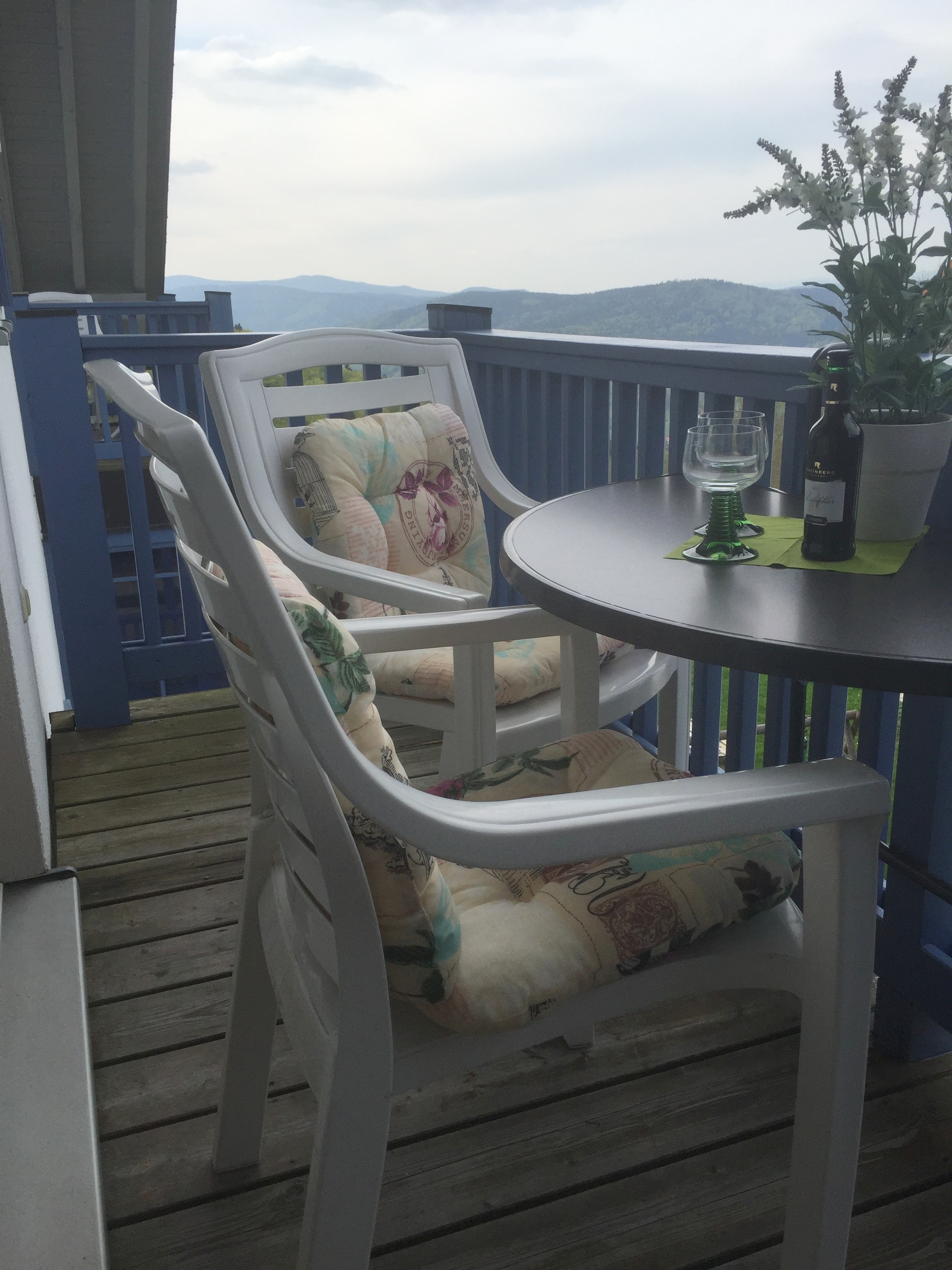 Vom kleinen Balkon aus haben Sie einen herrlichen Fernblick bis fast zum großen Arber.