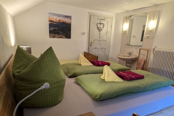Das Ferienhaus Meins liegt auf 1.360 m und steht Ihnen zur Alleinnutzung zur Verfügung, alle Zimmer sind zusätzlich mit Waschbecken als Ergänzung zu den 2 Bädern ausgestattet. Sie wohnen in gemütlichen Balkonzimmern mit Panoramablick. Das Haus verfügt über eine voll ausgestattete Küche, einer Zirbenholzstube im traditionell-gemütlichen Stil, 2 Bäder, davon ist eines mit einem modernen Jacuzzi (individuell einstellbaren Unterwasserfarblicht-, Soundsystem-, Air-und Whirlpool Funktion) ausgestattet, 2 Toiletten, 5 Schlafzimmer und versperrbaren Abstellplatz für Ski- und Wanderausrüstung. Umgeben werden Sie von einem wunderschönen groß angelegten Garten mit Bäumen und Miniaturglockner. Im Garten kann man im gemütlichen Beisammensein wunderbar relaxen und grillen. Drei kostenlose Parkplätze befinden sich direkt am Haus. Ein Brötchenservice mit morgendlicher Hauszustellung und eine Waschmaschine sind vor Ort buchbar. Einfach zum Genießen und Entspannen im gemütlichen Ambiente eines ehemaligen Bauernhauses - den Urlaub mit Familie und Freunden - ganz ohne Essens-, Skibus- oder sonstigen Zwängen verbringen ...