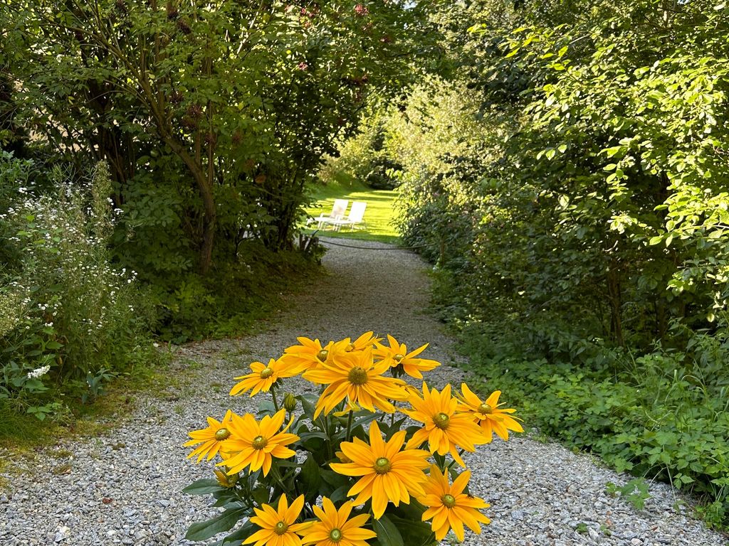 Im großen Außenbereich mit eigenem Gartenanteil steht eine gemütliche Außenbestuhlung zur Verfügung.