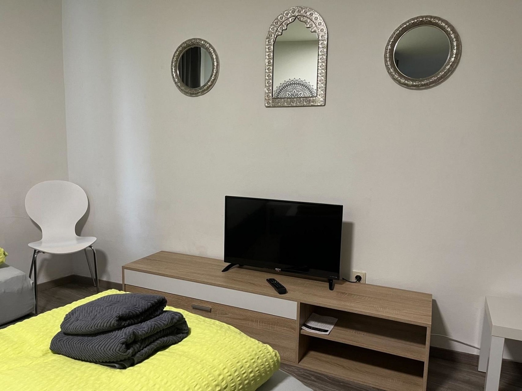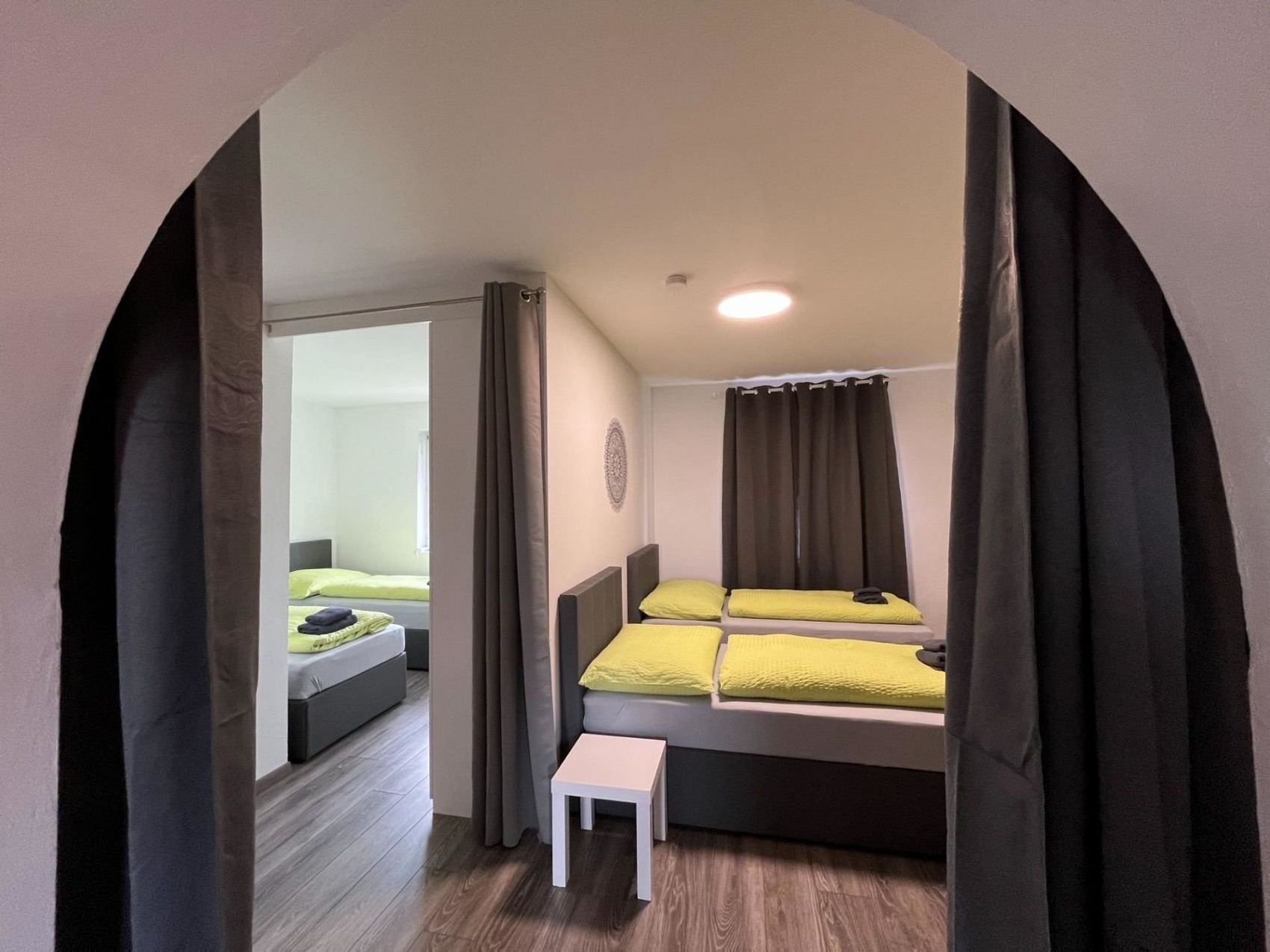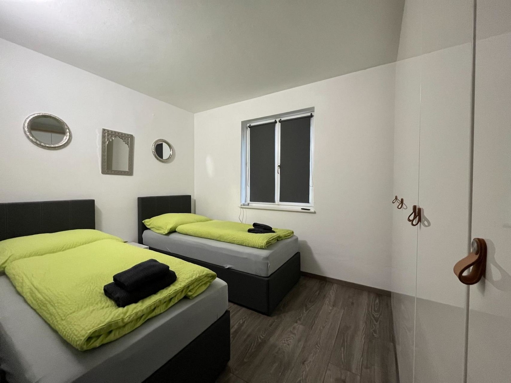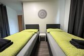 Im Apartment befinden sich ausschließlich hochwertige Einzelbetten (überwiegend Boxspringbetten) im Maße von 90 x 200 cm sowie ein Gästebett aus Holz (90 x 200 cm).