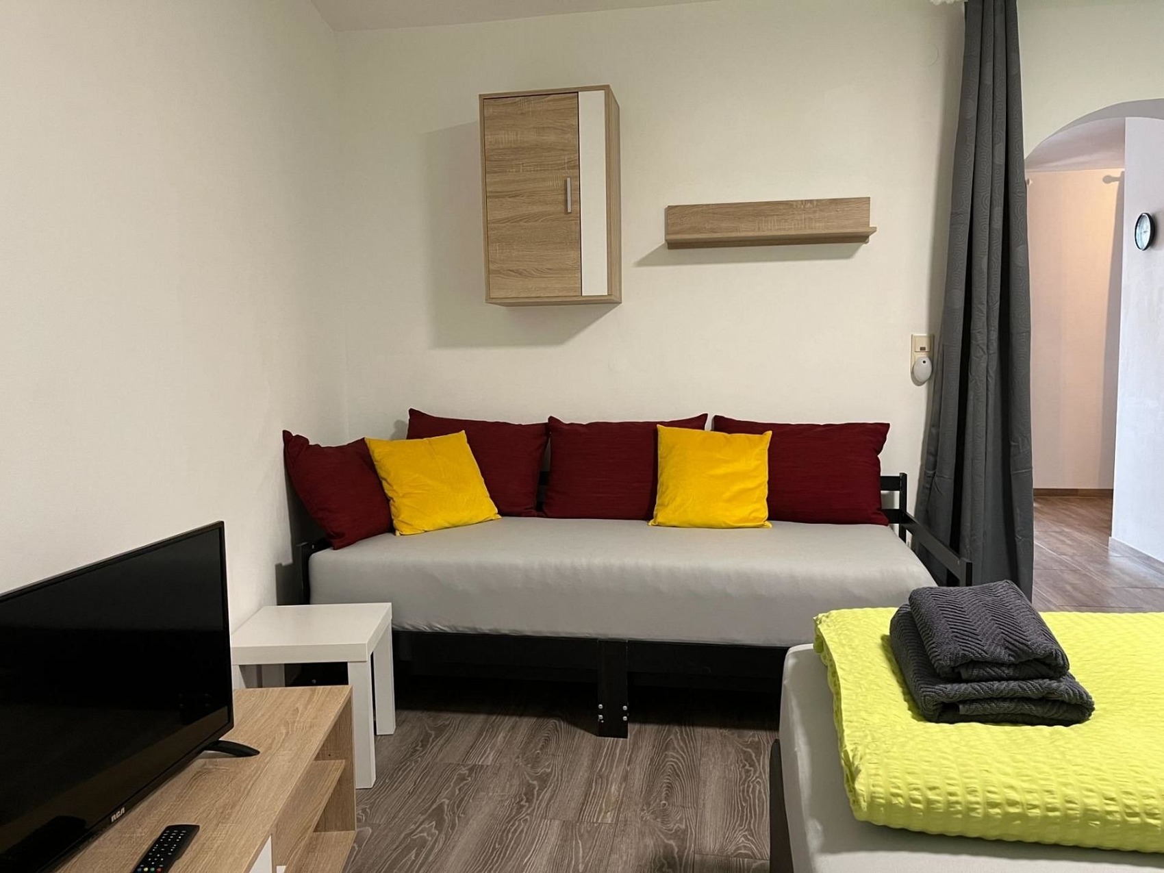 Zusätzlich befindet sich in diesem Apartment ein TV-Gerät. Abgerundet wird dieses Apartment durch einen großen überdachten Balkon.