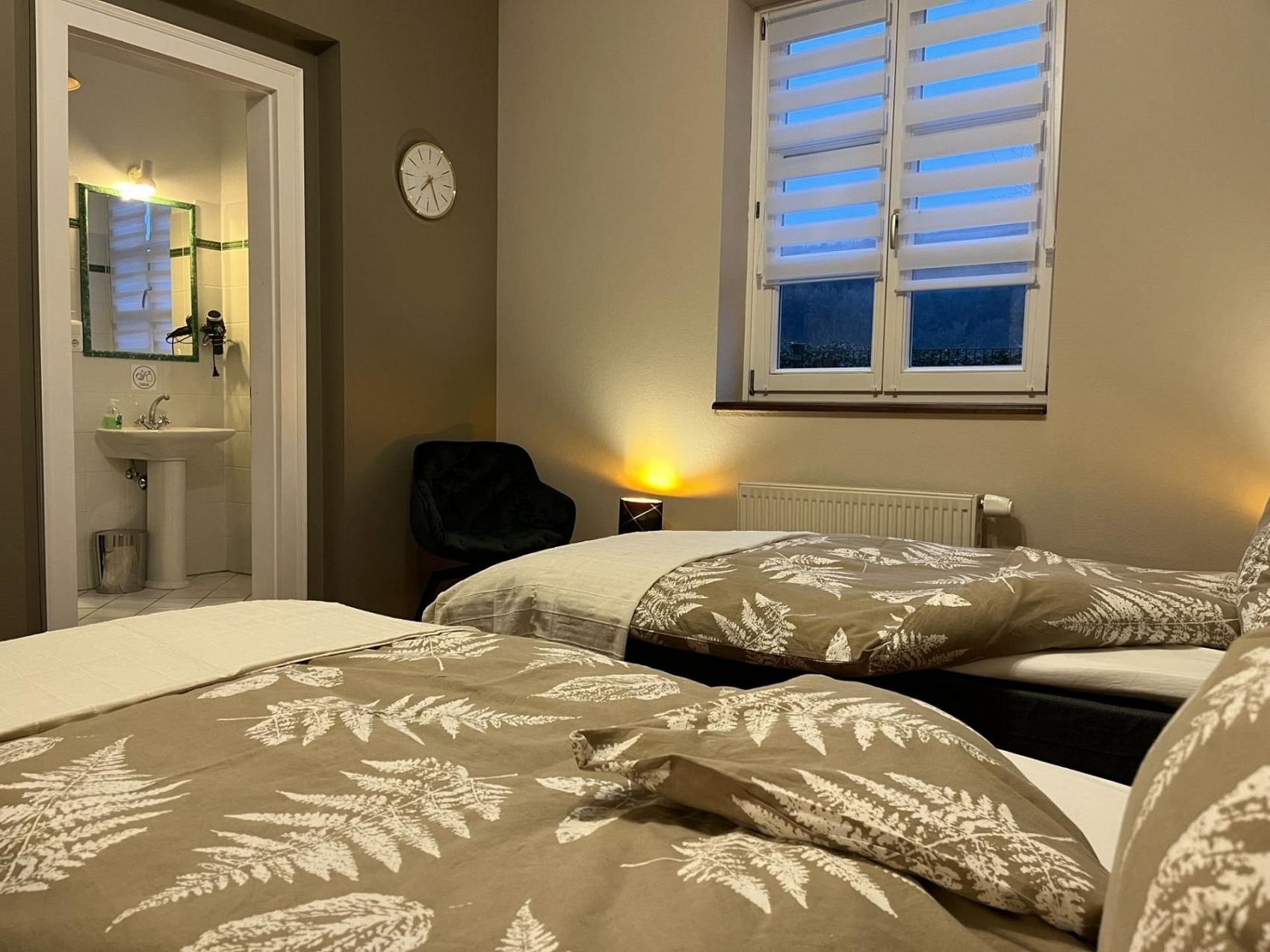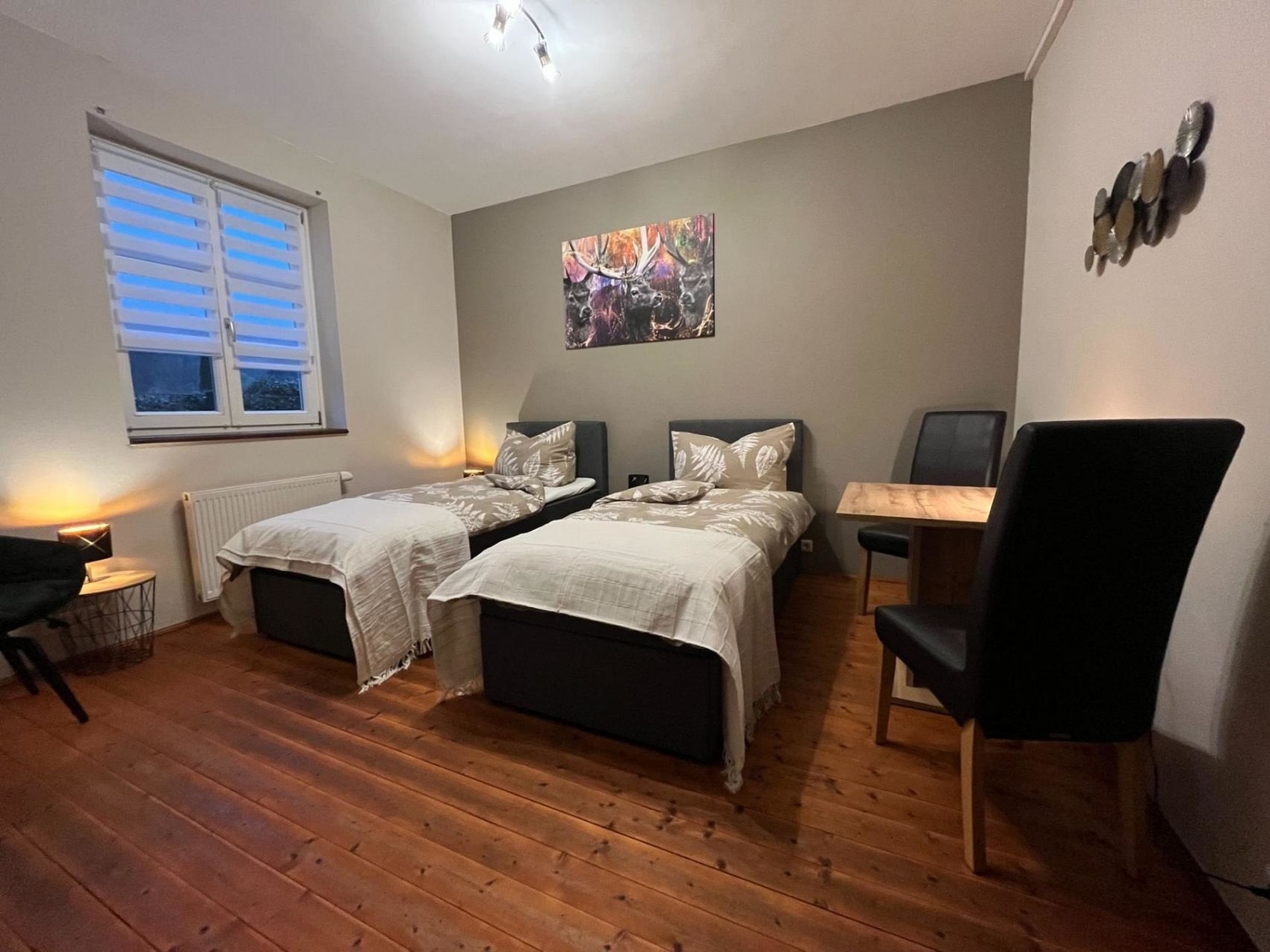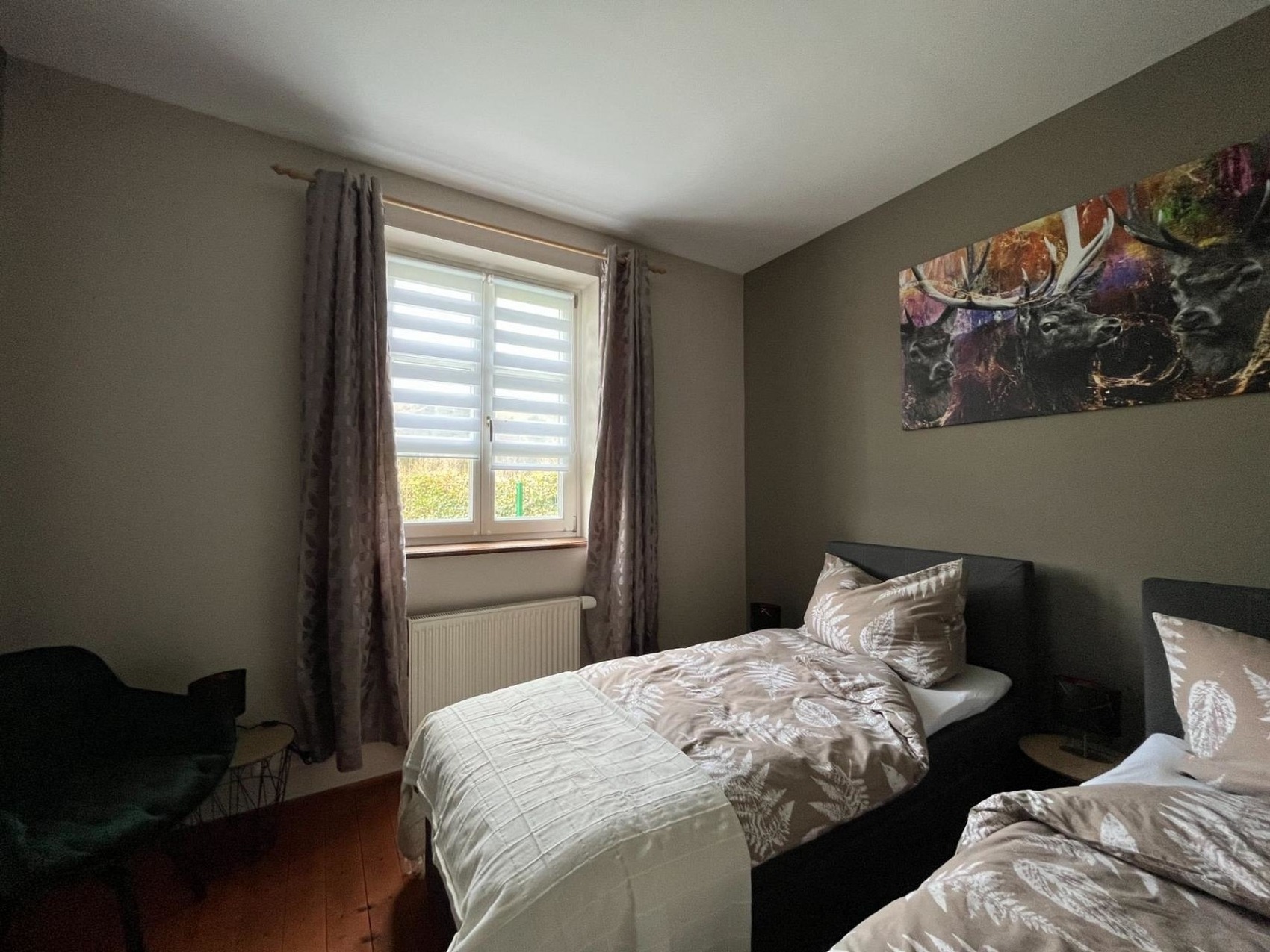 Wir bieten in unserem Apartment RAPHAEL am Schloss Wald in der Perschlingtalstr. 35, 3144 Pyhra-Wald, südlich der Landeshauptstadt St. Pölten (15 Minuten), Wien (45 Minuten) und Krems / Wachau (25 Minuten) ein Zweizimmer-Apartment mit 2 Boxspring-Einzelbetten sowie Riesen-Schlafcouch an.
