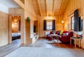 Ein Ferienhaus ist 76,44 m² groß und in naturnaher Holzbauweise errichtet. Das Haus ist auch mit Massivholzmöbeln im Landhausstil eingerichtet. Sie bieten dadurch angenehmes und gemütliches Wohnen. Auch Hunde sind willkommen.