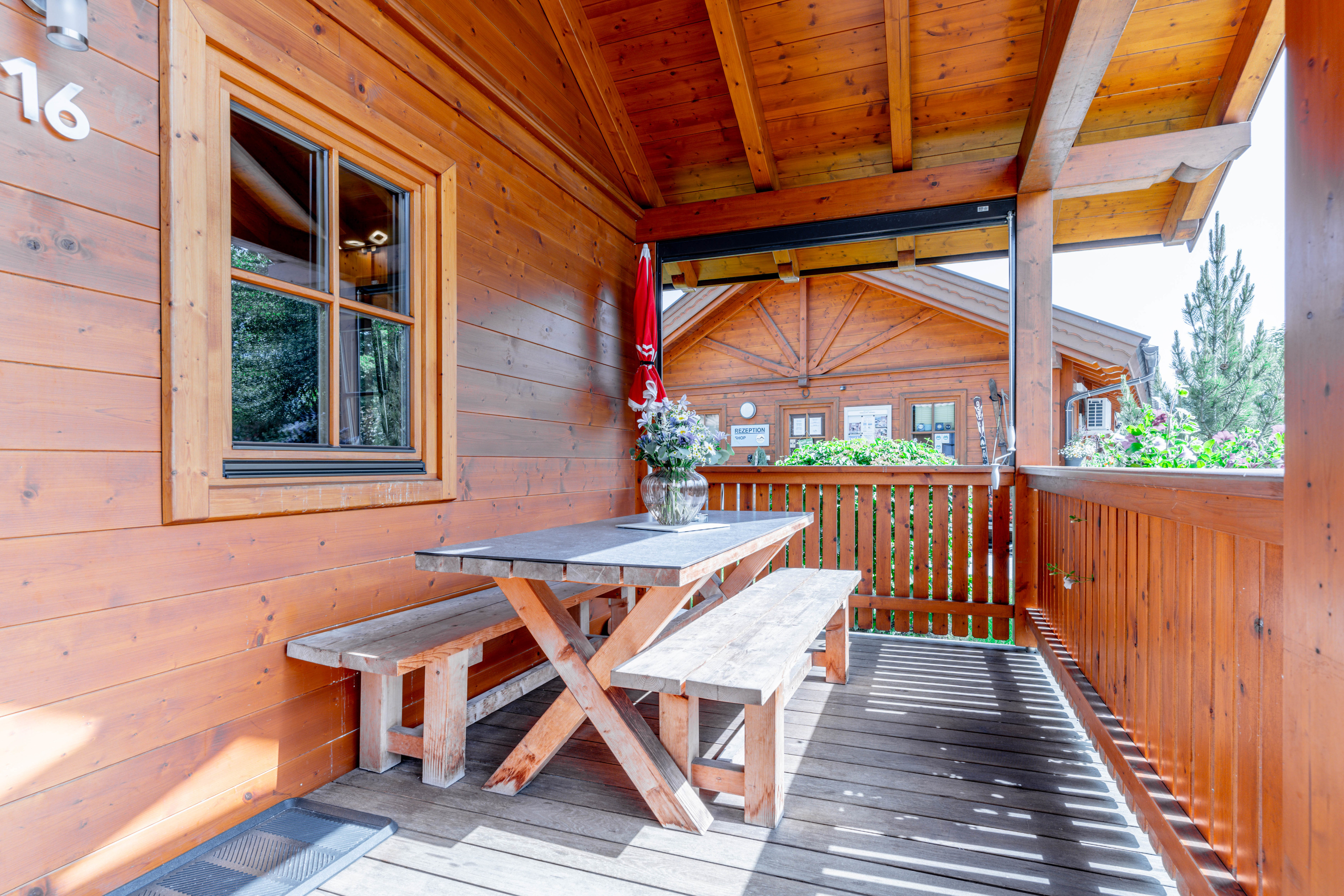 Die Veranda ist versperrbar, der Abstellraum ist mit einem Skischuhwärmer ausgestattet.