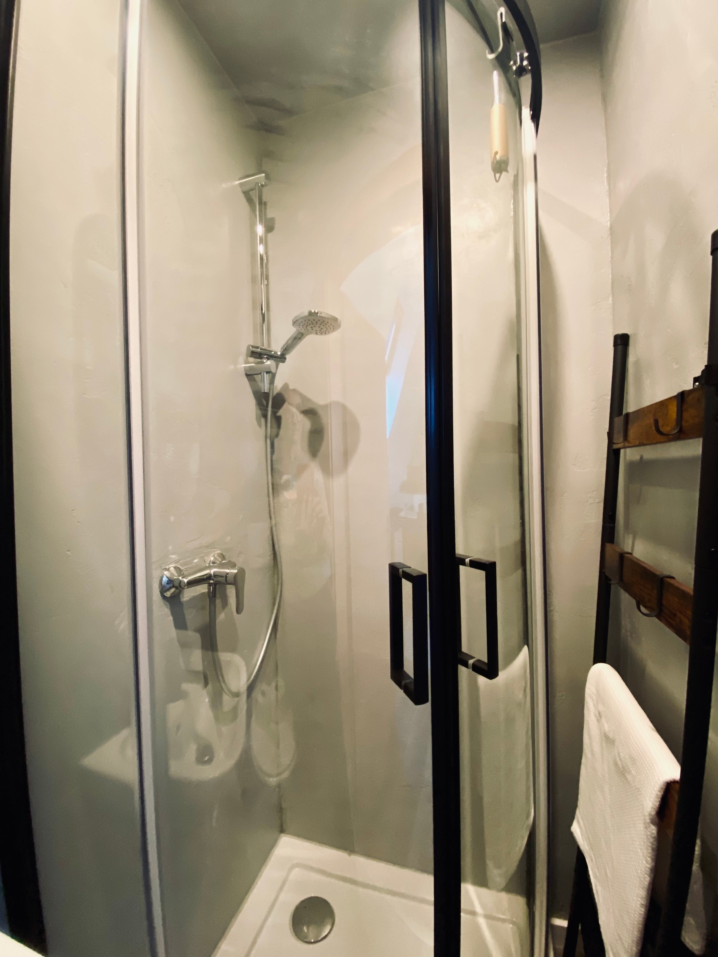 Das stylische und moderne Bad ist wie eine kleine Frischzellenkur nach einer ausgedehnten Wanderung. Fön und Handtücher bekommst du von uns.