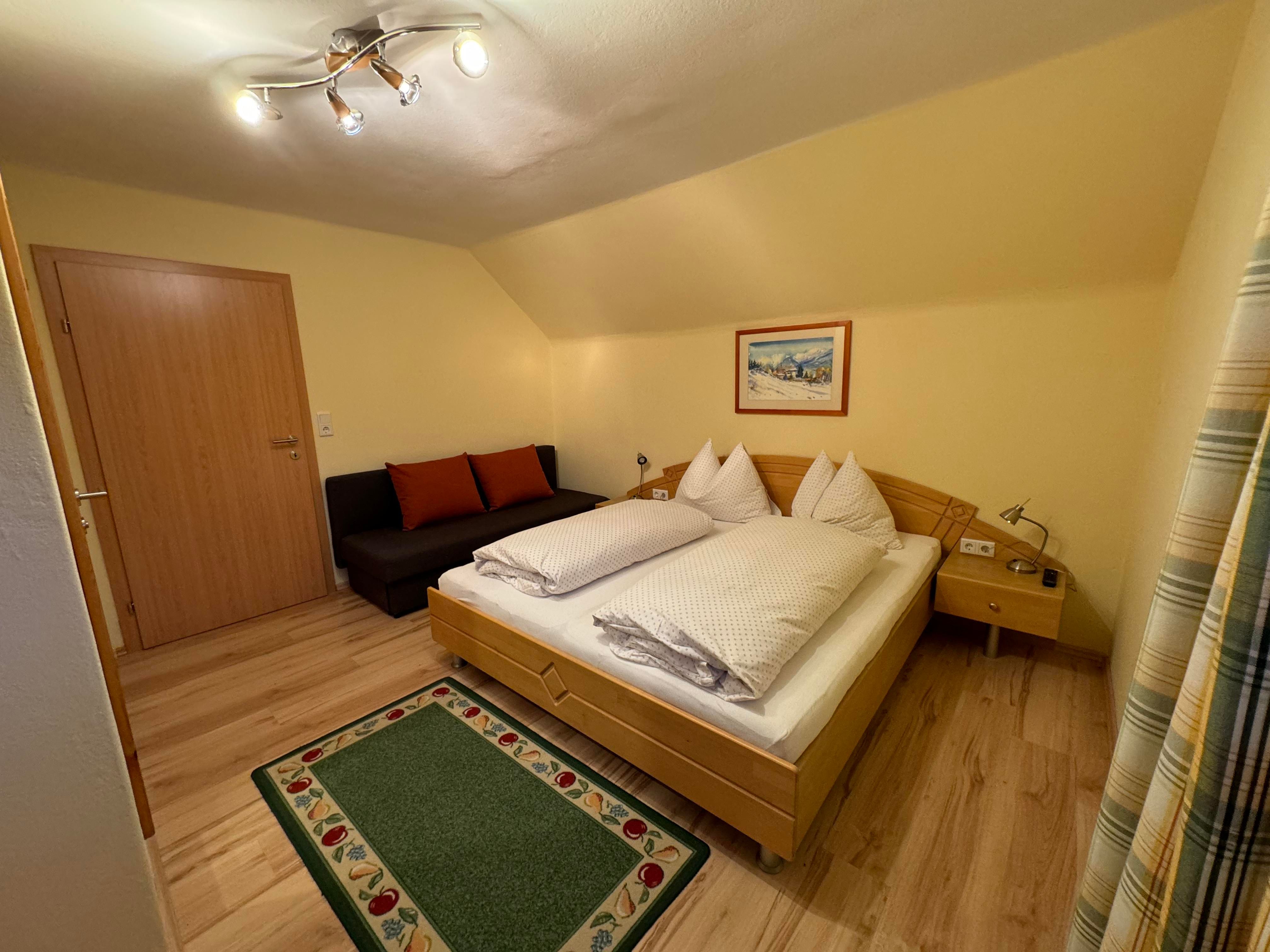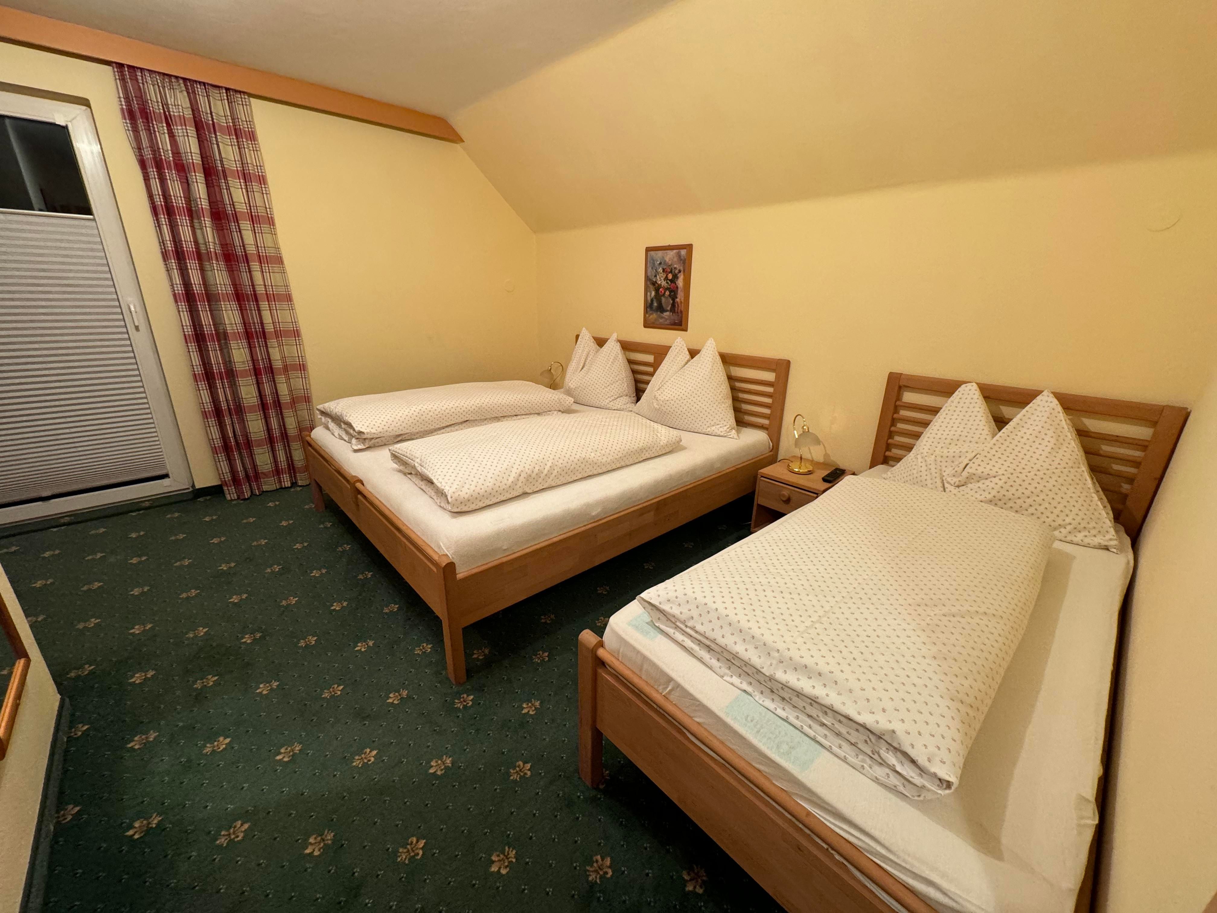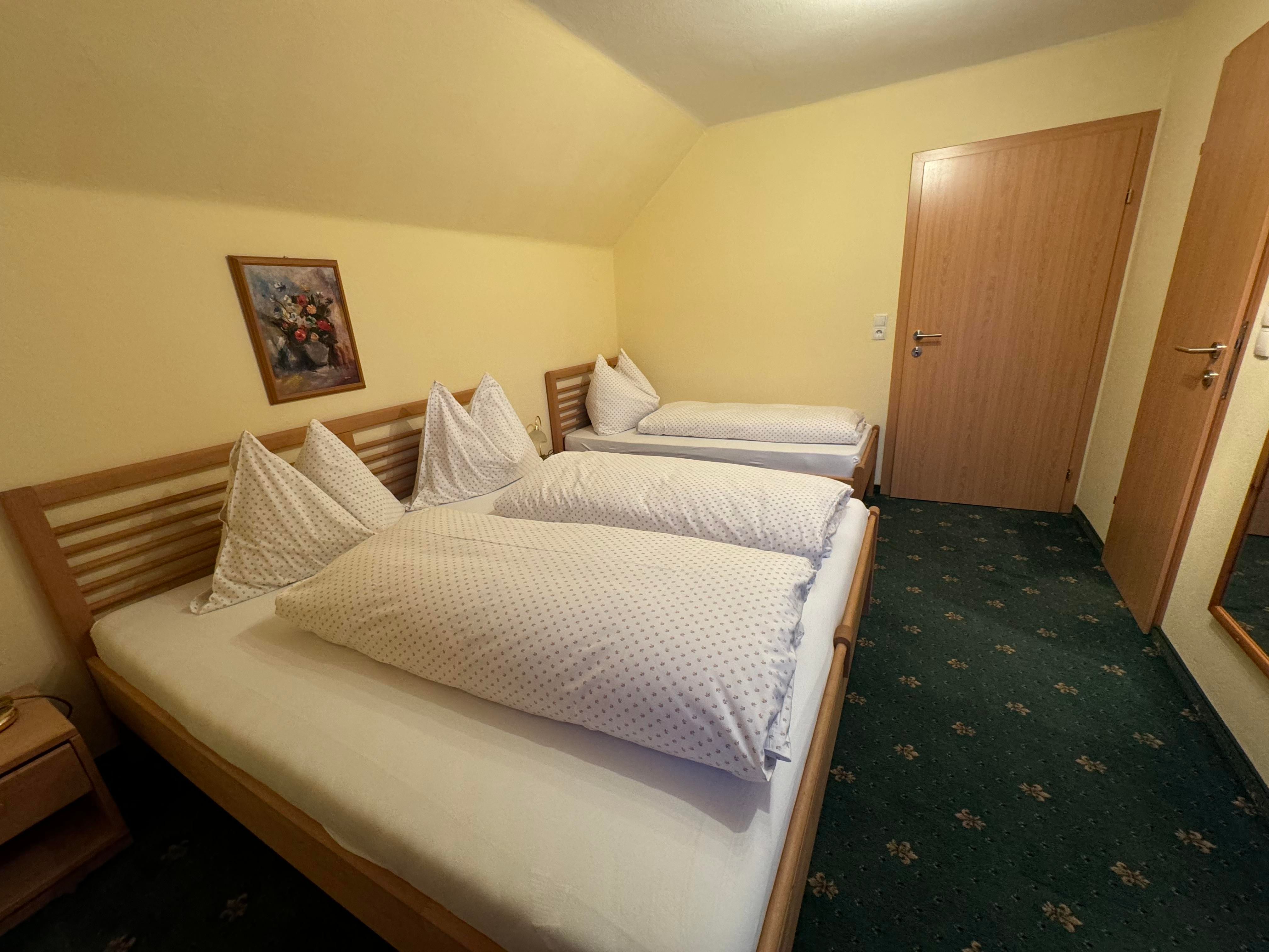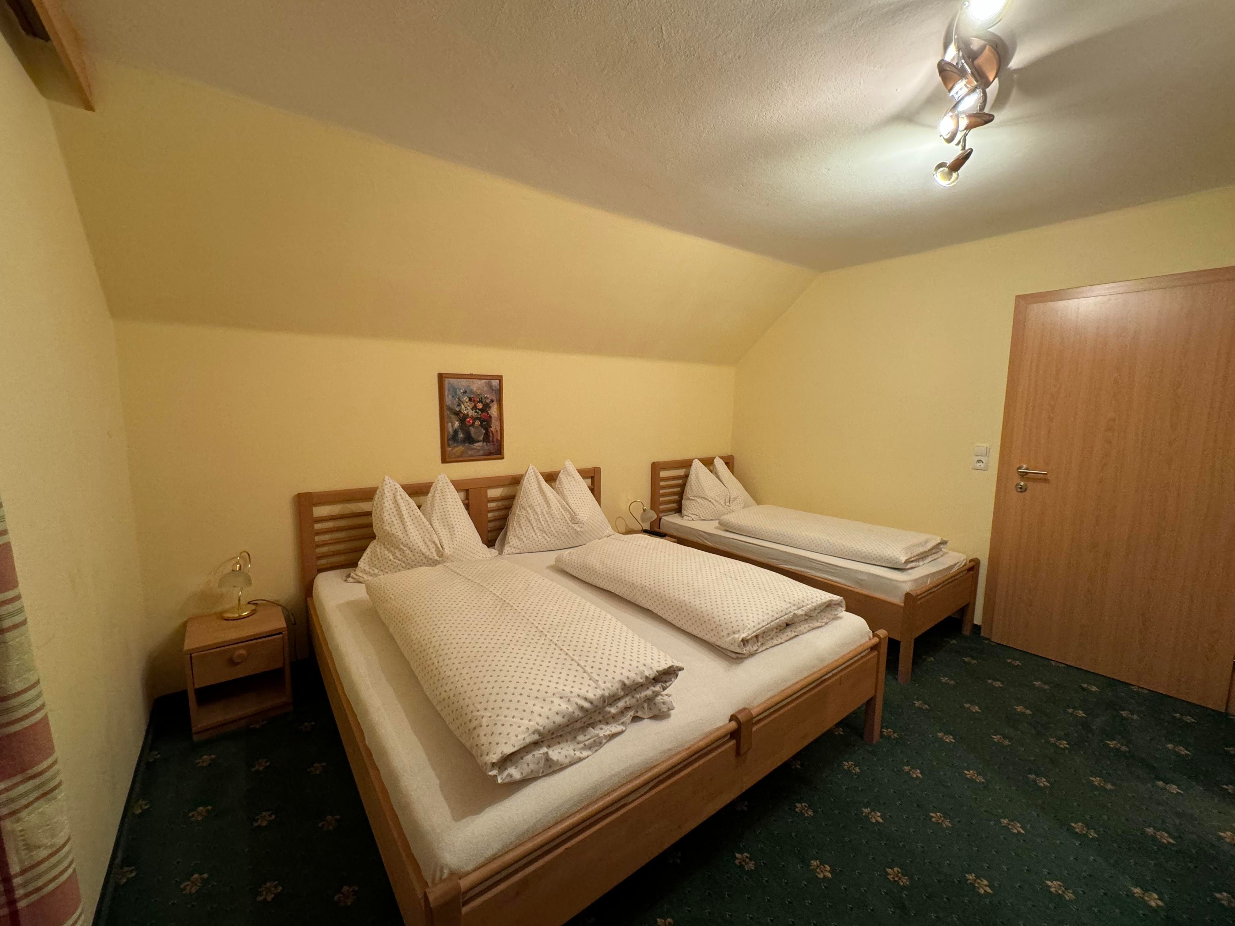 Appartement mit 1 Dreibettzimmer und 2 Doppelzimmer. Jedes Zimmer verfügt über ein eigenes Bad mit Dusche/WC. Für das gemütliche Zusammensein eignet sich die Küche mit Sitzecke. Gratis W-Lan. Eigene Sauna im Appartement.