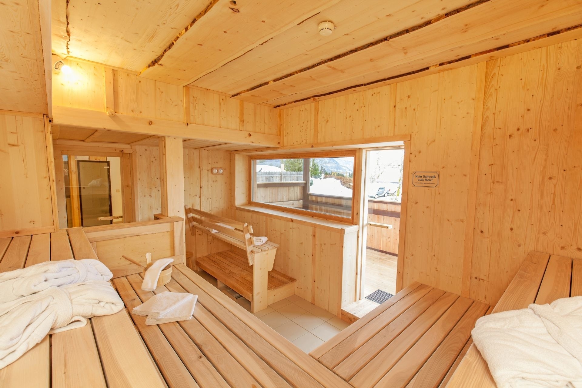 Als Gast in unserem Appartement in der Nähe Wolfgangsee und Hallstätter See nutzen Sie das Hallenbad mit Panorama- und Bergblick und den neuen Wellnessbereich mit Panoramasauna und großem Ruheraum kostenfrei.