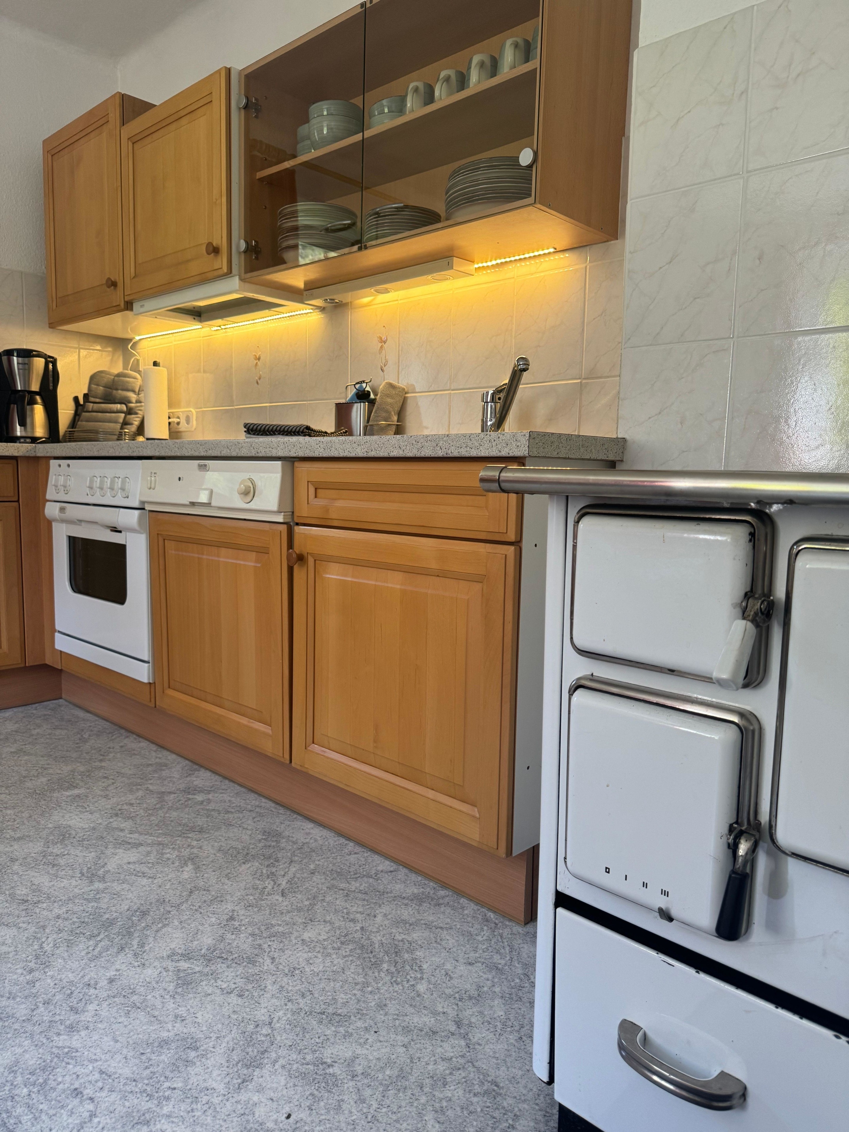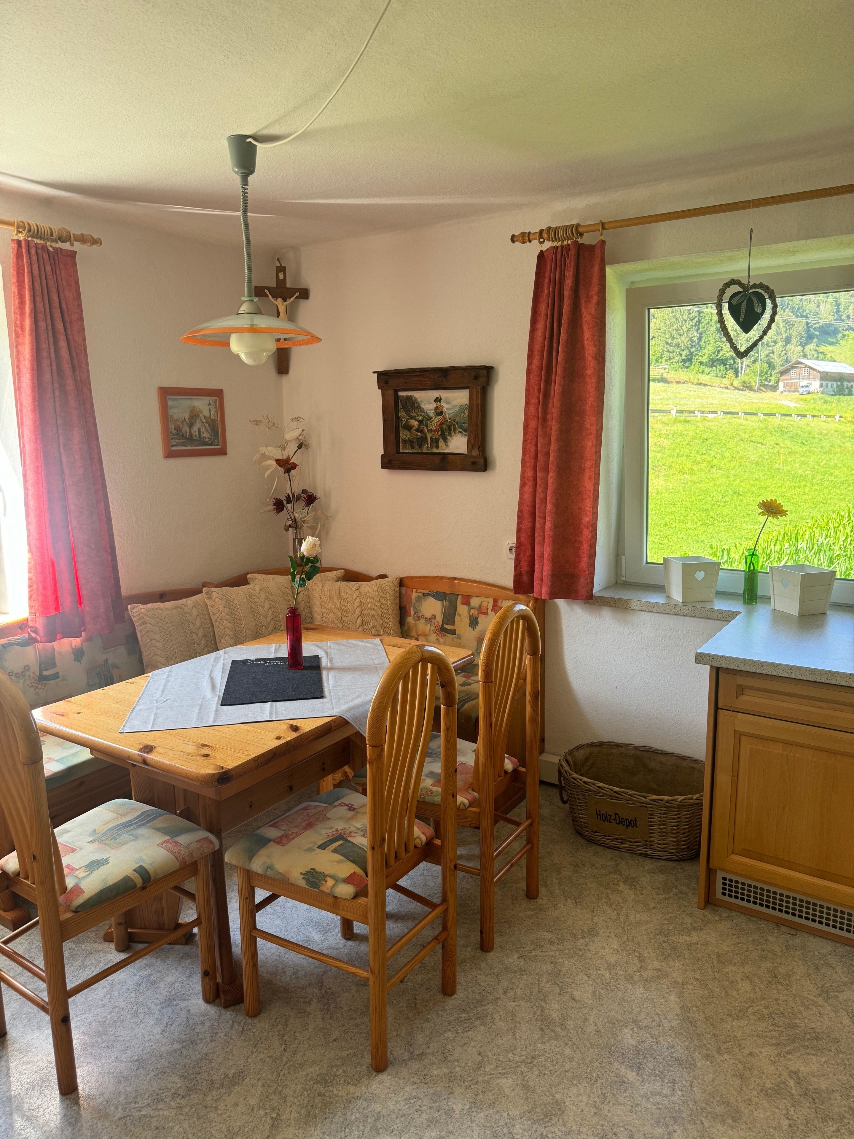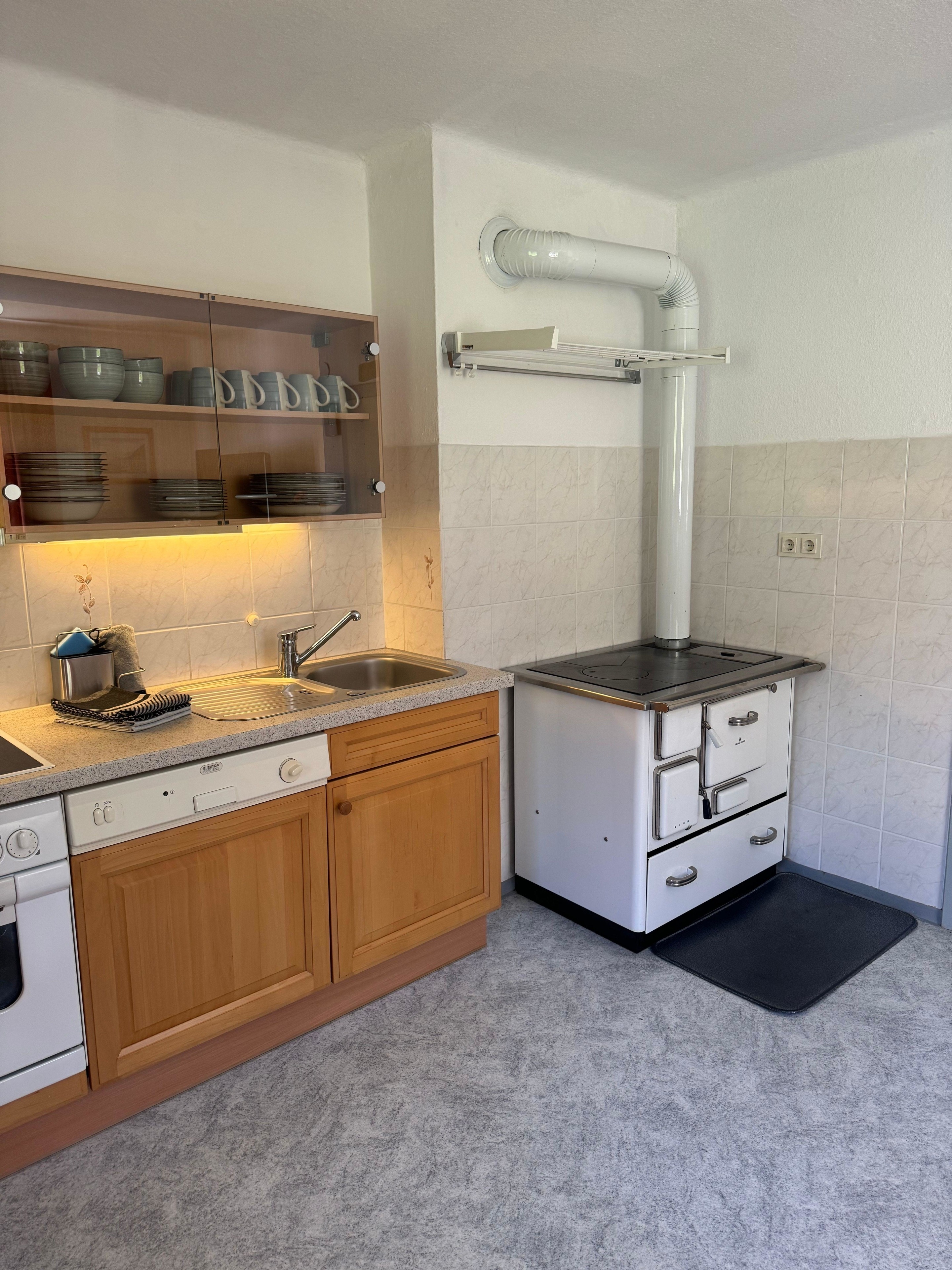 Das Highlight ist allerdings die gemütliche Wohnküche mit Holzofen wo die ganze Familie Platz hat zum Essen oder zum Spielen.