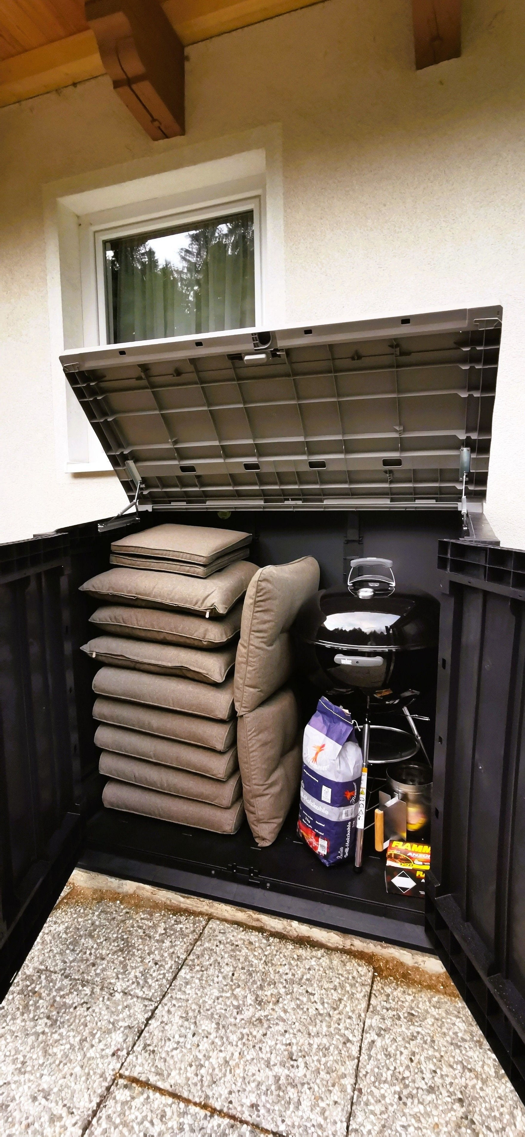 Die Ferienwohnung verfügt über einen Abstellraum wo Sie Reinigungsmittel, Sonnenliegenbezüge, Wäscheständer und mehr finden.