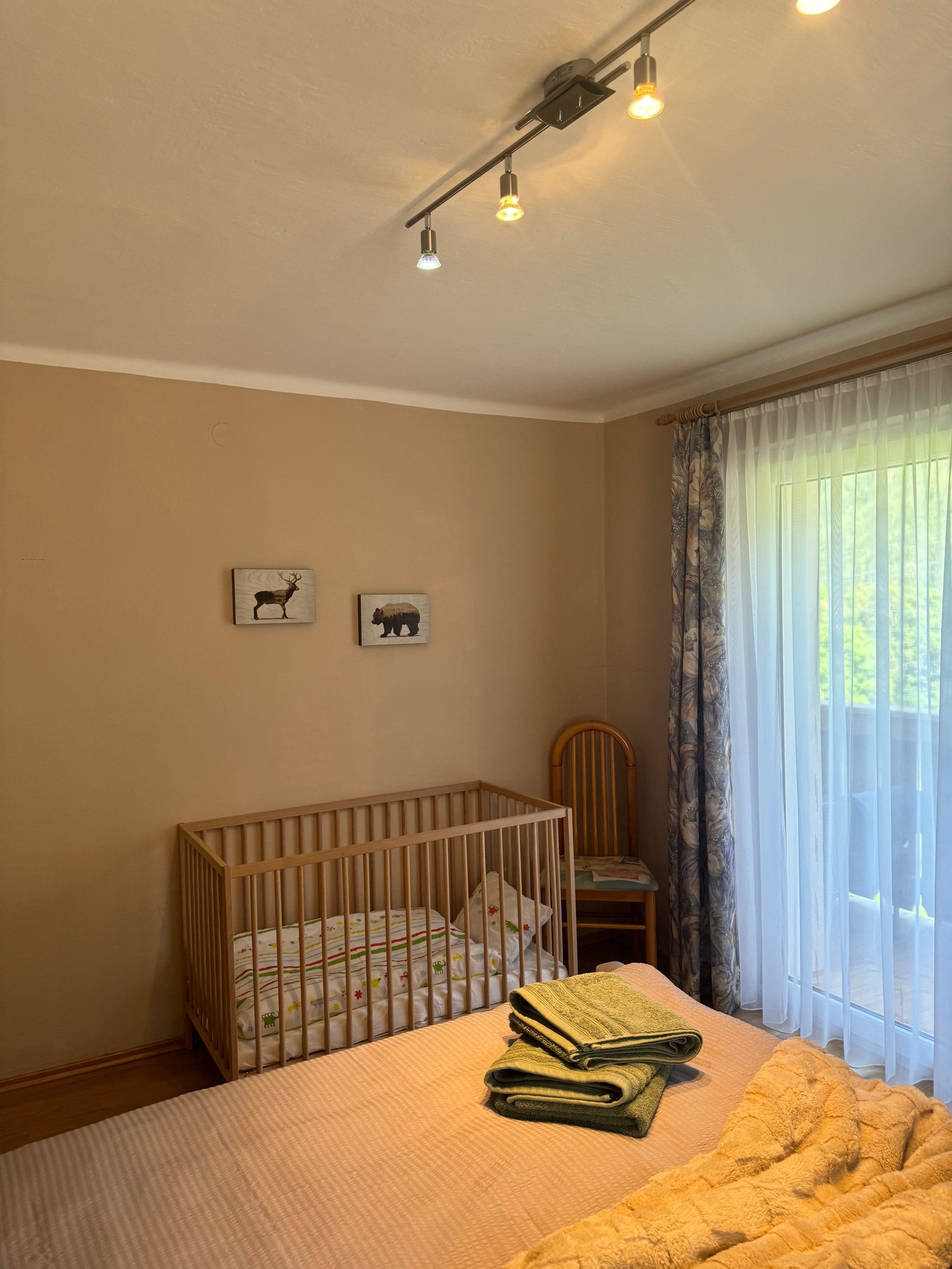 Hochstuhl und Kinderbett stehen zur Verfügung.