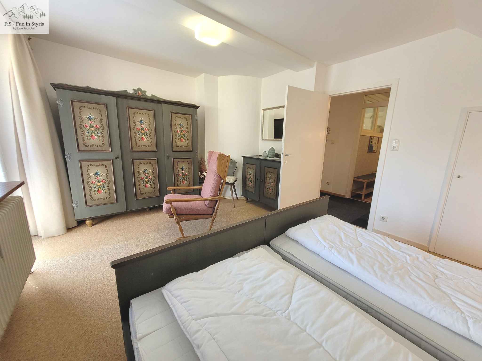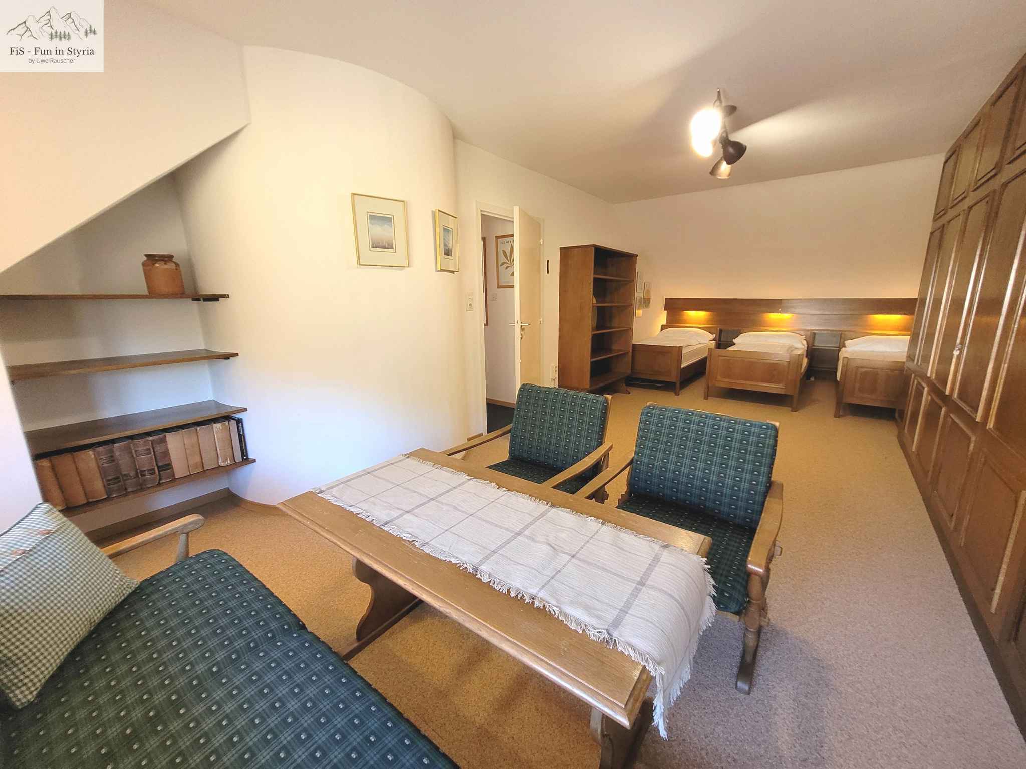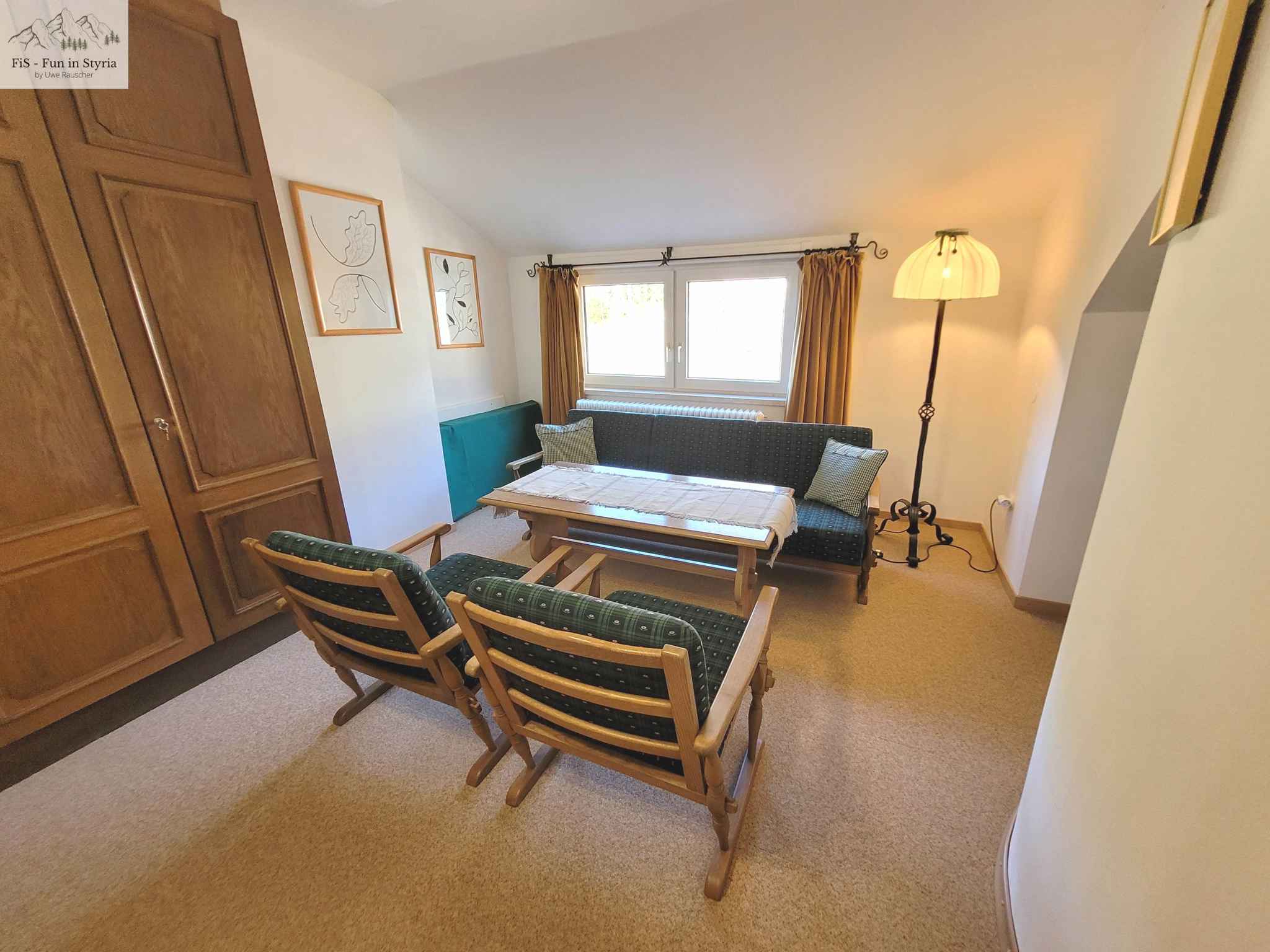 Die Ferienwohnung befindet sich in einer Ferienanlage (insgesamt 18 Unterkünfte und 86 Betten) und ist umgeben von einem offenen Grundstück mit Wiese und Bäumen. Die Anlage verfügt über Empfangshalle, Skiraum und Gartenmöbel. Sauna. Weitere Ausstattung: Zahlung mit EC-Karte oder in Bargeld. Reinigungsutensilien, Toiletteartikel und Lebensmittel sind bitte mitzubringen und werden nicht bereitgestellt.Kreditkarten: Visa, MasterCard, Eurocard.Lage: Bad Mitterndorf, Ortsteil Bad Mitterndorf, 810 mNN. Die Ferienwohnung befindet sich in einem 1970 erbauten Apartementhaus, wurde im Jahr 2015 renoviert und ist rustikal, zweckmäßig und im typischen Landesstil eingerichtet. Das Grundstück liegt in einer Ferienanlage. Auch wegen des Ausblicks auf die Wälder und der sonnigen Lage am Waldrand ist das Domizil beliebt. Die Zufahrt zum Grundstück erfolgt über eine asphaltierte Nebenstraße. Im Winter sind Schneeketten empfohlen. Am Haus stehen Parkplätze auf dem Grundstück zur Verfügung. Die nächste Einkaufsmöglichkeit ist 2 km entfernt, Restaurant 1000 m und Ortszentrum 2 km. Bad Mitterndorf: Arzt, Bank jeweils 1000 m. Apotheke 2 km und Bahnhof, Thermalbad, Hallenbad, Sauna jeweils 3 km. Kino in Liezen 30 km. Flughafen in Salzburg 99 km. Diskothek in Tauplitz 10 km. Ein Kinderspielplatz ist 2 km entfernt. Bahnlinie 3 km und Hauptstraße 2 km.Im Sommer: Ödensee in Kainisch 10 km, Sandstrand mit Wiese, Kies, Steinen und Felsen in Kainisch, 10 km von Ihrer Unterkunft entfernt. Ihr vierbeiniger Begleiter ist herzlich willkommen am Hundestrand in Bad Mitterndorf, 3 km. Für die Nautiker unter Ihnen gibt es in Bad Mitterndorf einen Bootsverleih, 3 km. Zur Bootsanlegestelle in Grundlsee sind es 25 km. Petrijünger können in Bad Mitterndorf, 3 km die Angel auswerfen. Weitere Sport- und Freizeitangebote warten auf Sie in der Umgebung. Zum Beispiel Golf in Bad Aussee 12 km. Tennis, Minigolf, Reiten jeweils 2 km in Bad Mitterndorf. Tauchen, Wassersportmöglichkeiten jeweils 25 km in Grundlsee.Im Winter: Der nächste Skilift befindet sich in 5 km Entfernung in Bad Mitterndorf. Das nächstgelegene Skigebiet Die Tauplitz ist 5 km entfernt und befindet sich in Bad Mitterndorf. Der Skibus fährt 1000 m von Ihrem Feriendomizil und ist inklusive. Weiterhin gibt es eine Loipe in Bad Mitterndorf, 2 km und eine Eislaufbahn in Bad Mitterndorf, 2 km. Eine Rodelbahn erwartet Sie in Tauplitz, 10 km. Skiverleih, Skischule jeweils 2 km in Bad Mitterndorf.