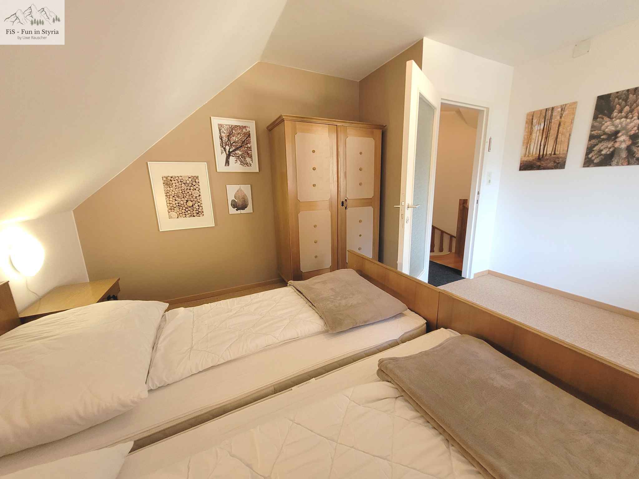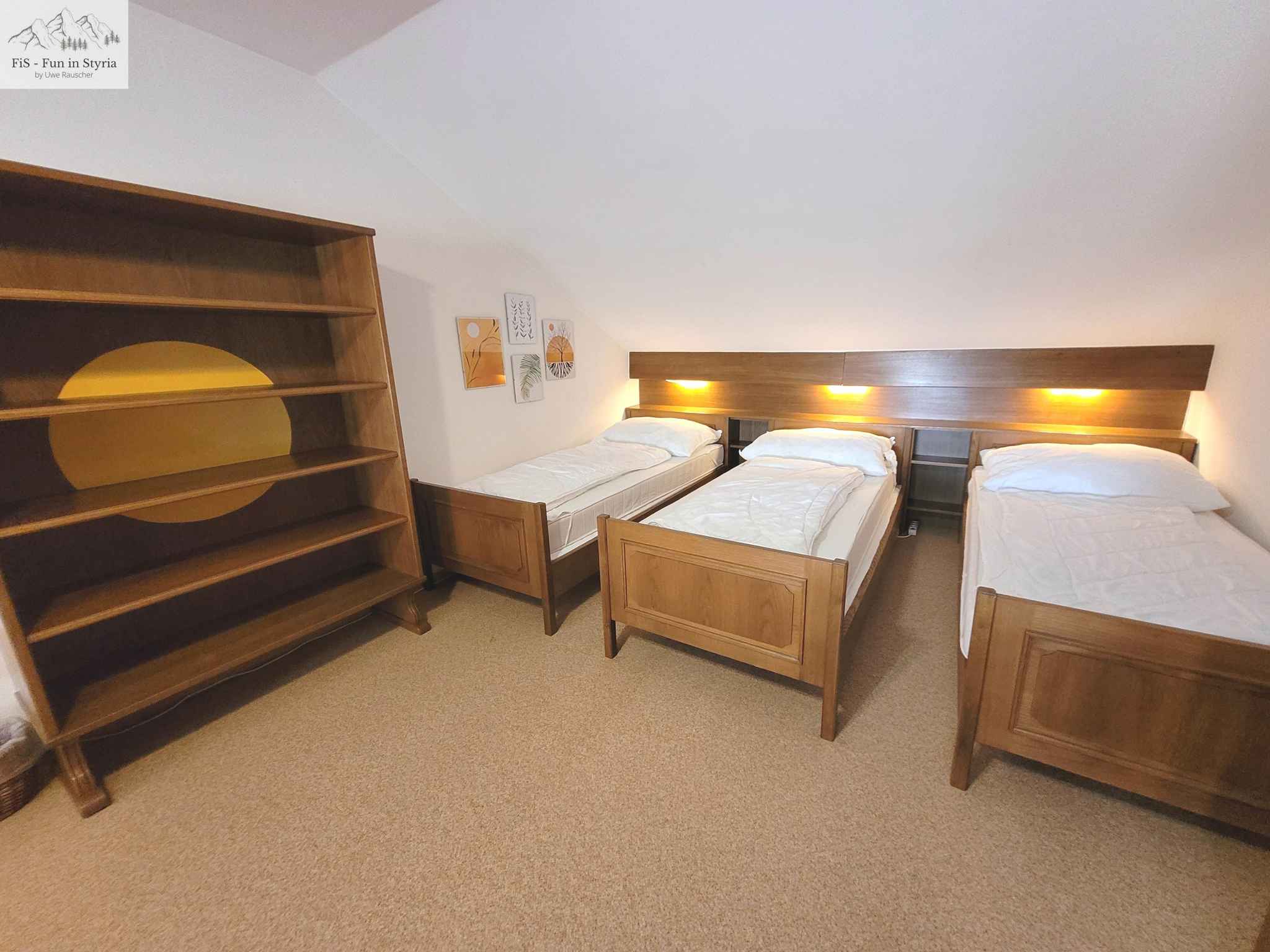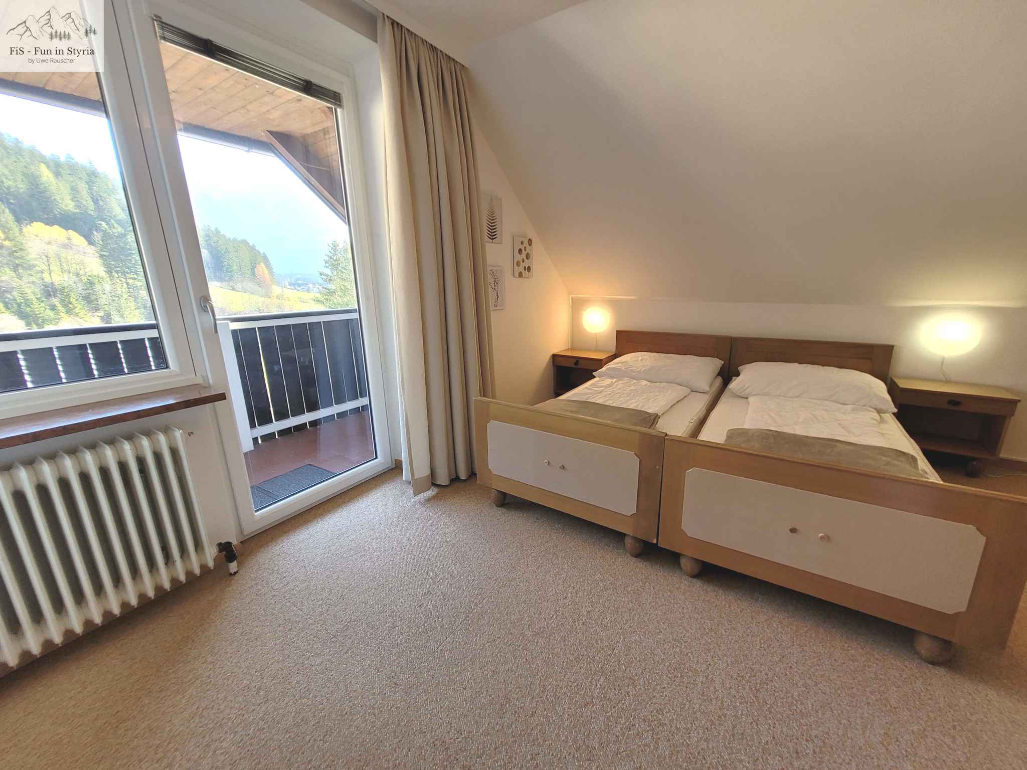 Die Ferienwohnung befindet sich in einer Ferienanlage (insgesamt 18 Unterkünfte und 86 Betten) und ist umgeben von einem offenen Grundstück mit Wiese und Bäumen. Die Anlage verfügt über Empfangshalle, Skiraum und Gartenmöbel. Sauna. Weitere Ausstattung: Zahlung mit EC-Karte oder in Bargeld. Reinigungsutensilien, Toiletteartikel und Lebensmittel sind bitte mitzubringen und werden nicht bereitgestellt.Kreditkarten: Visa, MasterCard, Eurocard.Lage: Bad Mitterndorf, Ortsteil Bad Mitterndorf, 810 mNN. Die Ferienwohnung befindet sich in einem 1970 erbauten Apartementhaus, wurde im Jahr 2015 renoviert und ist rustikal, zweckmäßig und im typischen Landesstil eingerichtet. Das Grundstück liegt in einer Ferienanlage. Auch wegen des Ausblicks auf die Wälder und der sonnigen Lage am Waldrand ist das Domizil beliebt. Die Zufahrt zum Grundstück erfolgt über eine asphaltierte Nebenstraße. Im Winter sind Schneeketten empfohlen. Am Haus stehen Parkplätze auf dem Grundstück zur Verfügung. Die nächste Einkaufsmöglichkeit ist 2 km entfernt, Restaurant 1000 m und Ortszentrum 2 km. Bad Mitterndorf: Arzt, Bank jeweils 1000 m. Apotheke 2 km und Bahnhof, Thermalbad, Hallenbad, Sauna jeweils 3 km. Kino in Liezen 30 km. Flughafen in Salzburg 99 km. Diskothek in Tauplitz 10 km. Ein Kinderspielplatz ist 2 km entfernt. Bahnlinie 3 km und Hauptstraße 2 km.Im Sommer: Ödensee in Kainisch 10 km, Sandstrand mit Wiese, Kies, Steinen und Felsen in Kainisch, 10 km von Ihrer Unterkunft entfernt. Ihr vierbeiniger Begleiter ist herzlich willkommen am Hundestrand in Bad Mitterndorf, 3 km. Für die Nautiker unter Ihnen gibt es in Bad Mitterndorf einen Bootsverleih, 3 km. Zur Bootsanlegestelle in Grundlsee sind es 25 km. Petrijünger können in Bad Mitterndorf, 3 km die Angel auswerfen. Weitere Sport- und Freizeitangebote warten auf Sie in der Umgebung. Zum Beispiel Golf in Bad Aussee 12 km. Tennis, Minigolf, Reiten jeweils 2 km in Bad Mitterndorf. Tauchen, Wassersportmöglichkeiten jeweils 25 km in Grundlsee.Im Winter: Der nächste Skilift befindet sich in 5 km Entfernung in Bad Mitterndorf. Das nächstgelegene Skigebiet Die Tauplitz ist 5 km entfernt und befindet sich in Bad Mitterndorf. Der Skibus fährt 1000 m von Ihrem Feriendomizil und ist inklusive. Weiterhin gibt es eine Loipe in Bad Mitterndorf, 2 km und eine Eislaufbahn in Bad Mitterndorf, 2 km. Eine Rodelbahn erwartet Sie in Tauplitz, 10 km. Skiverleih, Skischule jeweils 2 km in Bad Mitterndorf.