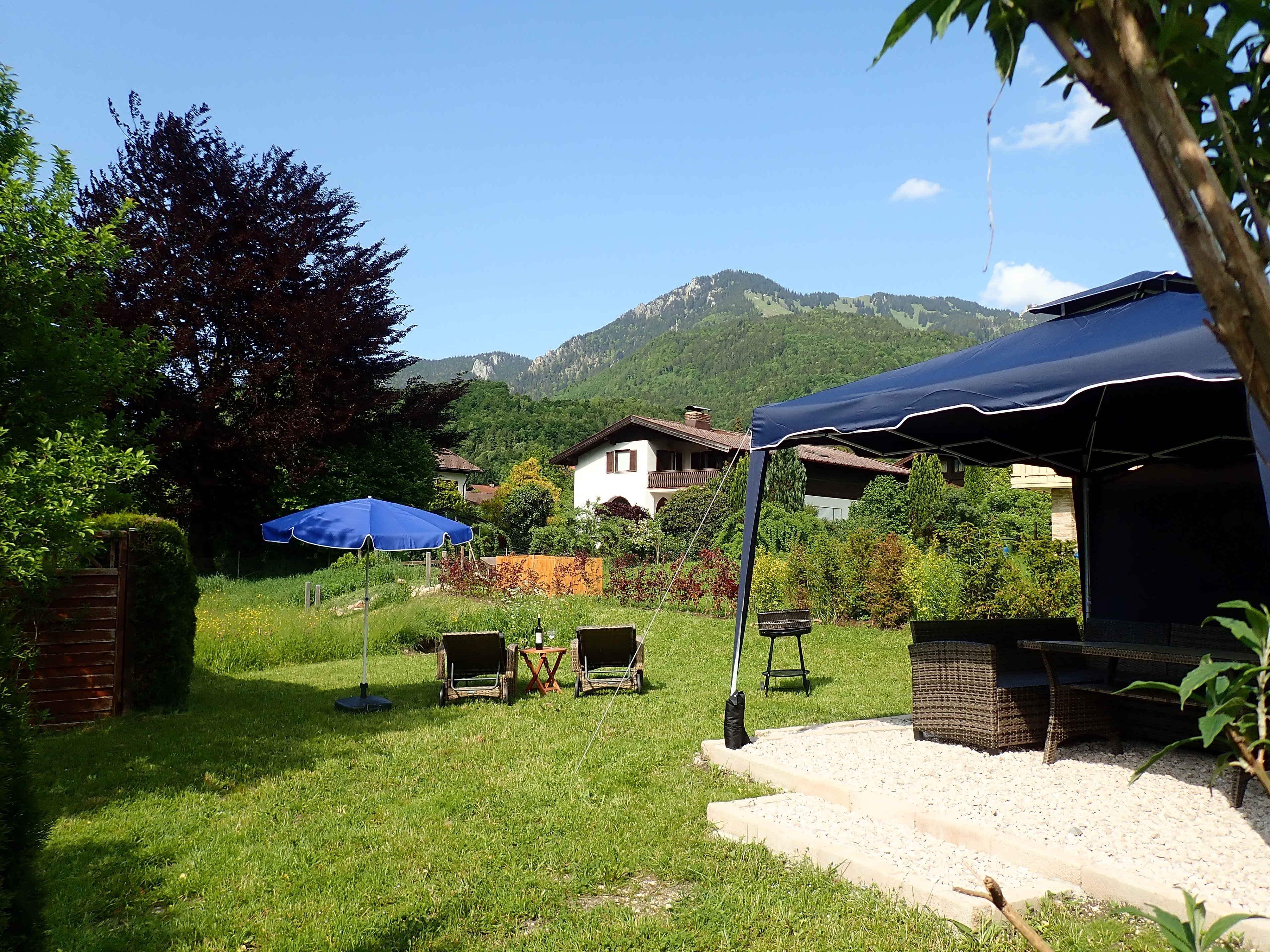 In unserer zentral gelegenen Ferienwohnung im Erdgeschoss am Hochgern bieten wir Ihnen viel Zeit für Entspannung oder für Erkundungen des Alpenraumes Chiemgau. Ein herrliches Bergpanorama erwartet Sie. Der Garten bietet Ihnen eine schöne, gepflegte Liegewiese mit Blick auf den Hochgern und den Jochberg. Für einen gemütlichen Grillabend steht auf der Terrasse im Garten ein Grill mit Grillbesteck zur Verfügung.