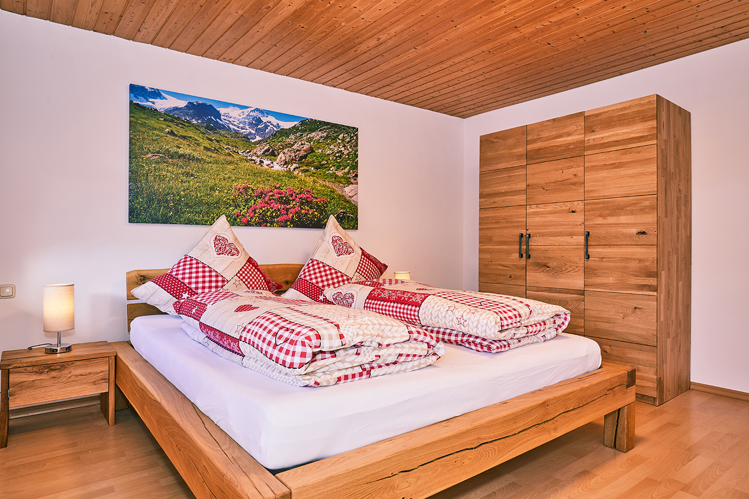 Die Chiemgauferienwohnung Alpenrose bietet Platz für bis zu fünf Gäste. Sie ist ausgestattet mit zwei Schlafzimmern (einem großen Schlafzimmer mit Doppelbett 200x180 und Einzelbett 200x90 und einem Schlafzimmer mit Stockbett 200x90), Wohnzimmer mit Essecke und Balkon, Bad mit Dusche/WC und Waschmaschine, Küche, separater absperrbarer Raum für Räder, Kinderwagen, Ski, Schlitten usw.
