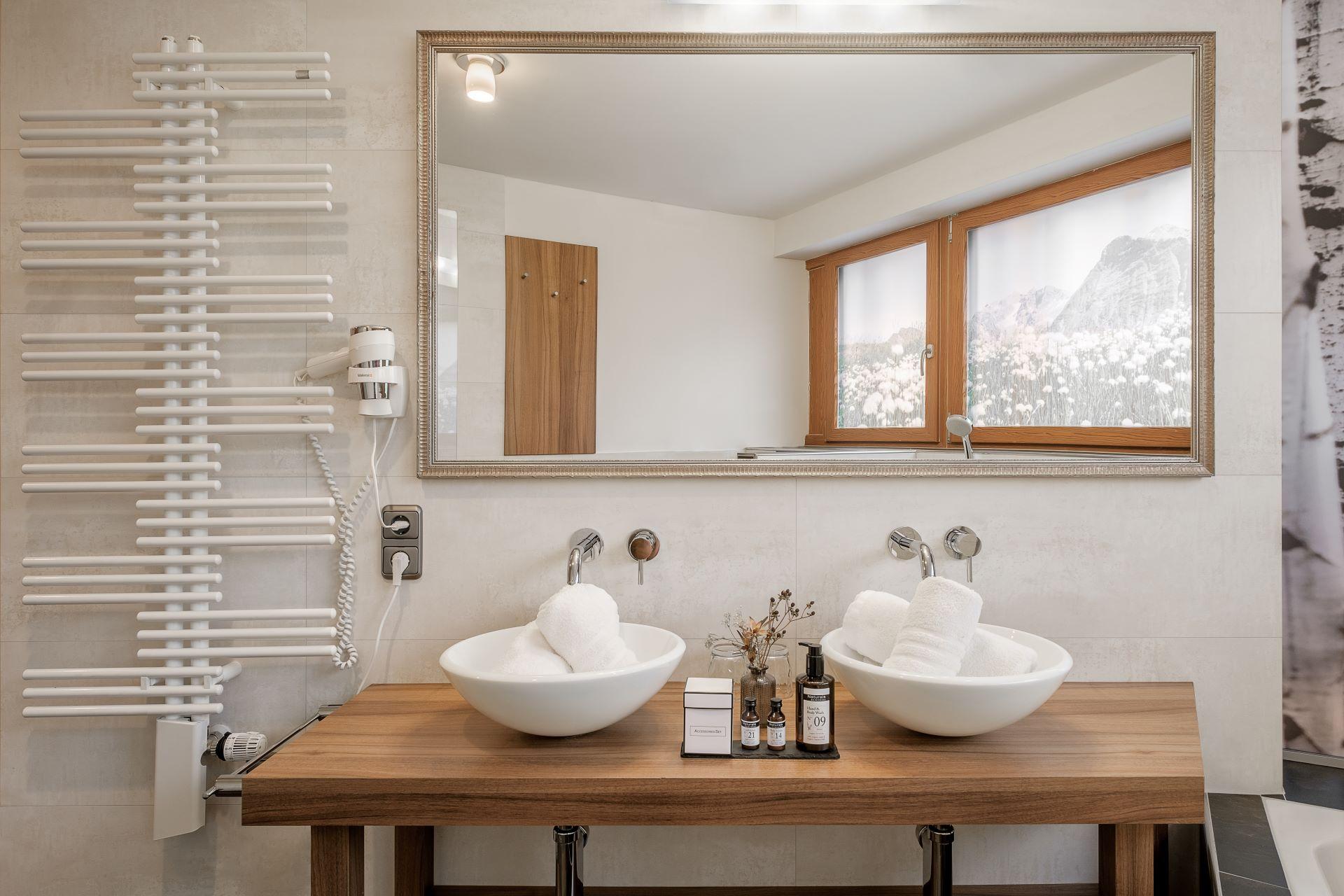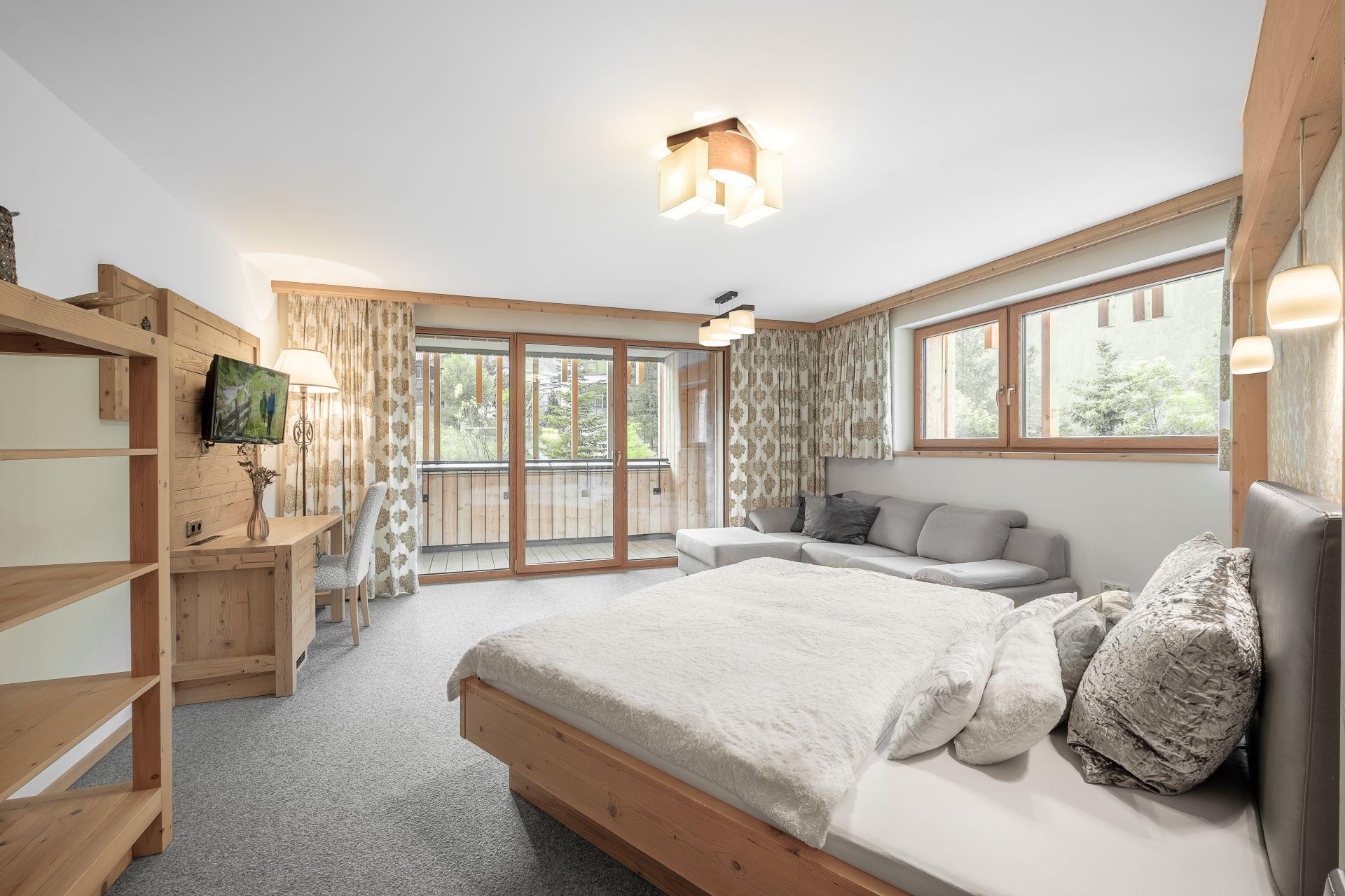 ca. 45 m² Suite Deluxe Feeling | 1 Wohn-Schafraum (Masterbedroom) mit großen Boxspring-Bett sowie 1 leicht separates Kinderzimmer mit Stockbett | 1 Badezimmer mit Wellnessdusche & Wanne, WC | Sitzlandschaft und Schreibtisch | Loggia-Balkon mit herrlichem Postkartenblick auf das atemberaubend Bergpanorama | Haartrockner & Kosmetikspiegel | Handtücher & Bademäntel für Erw. für unser Alpen Spa | TV in allen Wohn- und Schlafbereichen, WIFI |